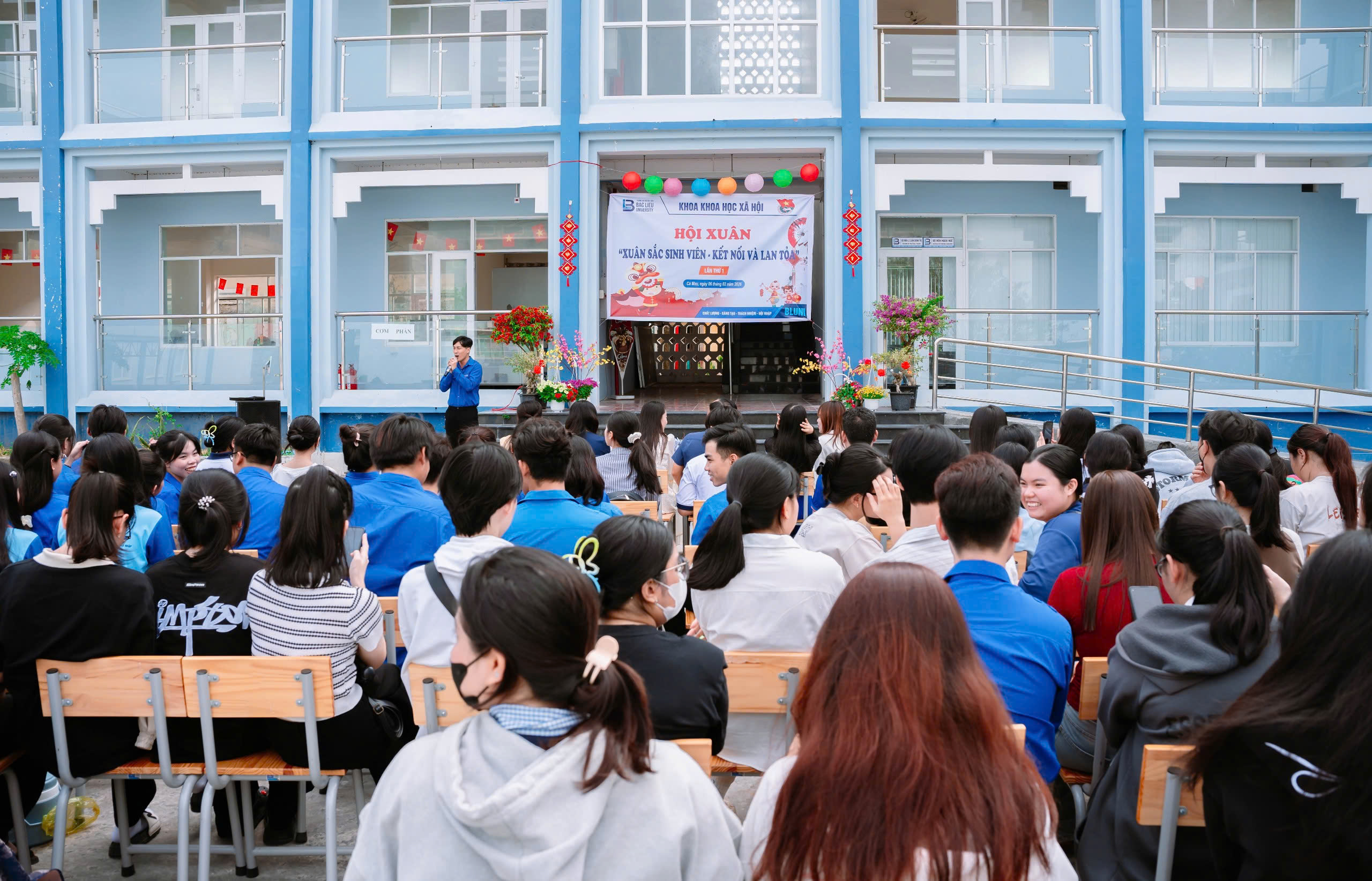 Chương trình có sự tham dự của cô Trần Nguyễn Quỳnh Như, Trợ giảng tiếng Anh Fulbright, mừng xuân trên quê hương Việt Nam cùng các bạn sinh viên Khoa Khoa học xã hội. Hội xuân là dịp để thầy cô và sinh viên cùng nhau đón chào năm mới, tăng cường giao lưu, kết nối giữa các thế hệ, qua đó nuôi dưỡng niềm tin, hy vọng và những giá trị tốt đẹp trong đời sống sinh viên, với nhiều hoạt động ý nghĩa và thiết thực như: Cuộc thi “Mâm cơm ngày Tết”; Viết lời ước nguyện đầu năm – bốc thăm trúng thưởng; Trao quà mừng xuân; Giao lưu văn nghệ,…