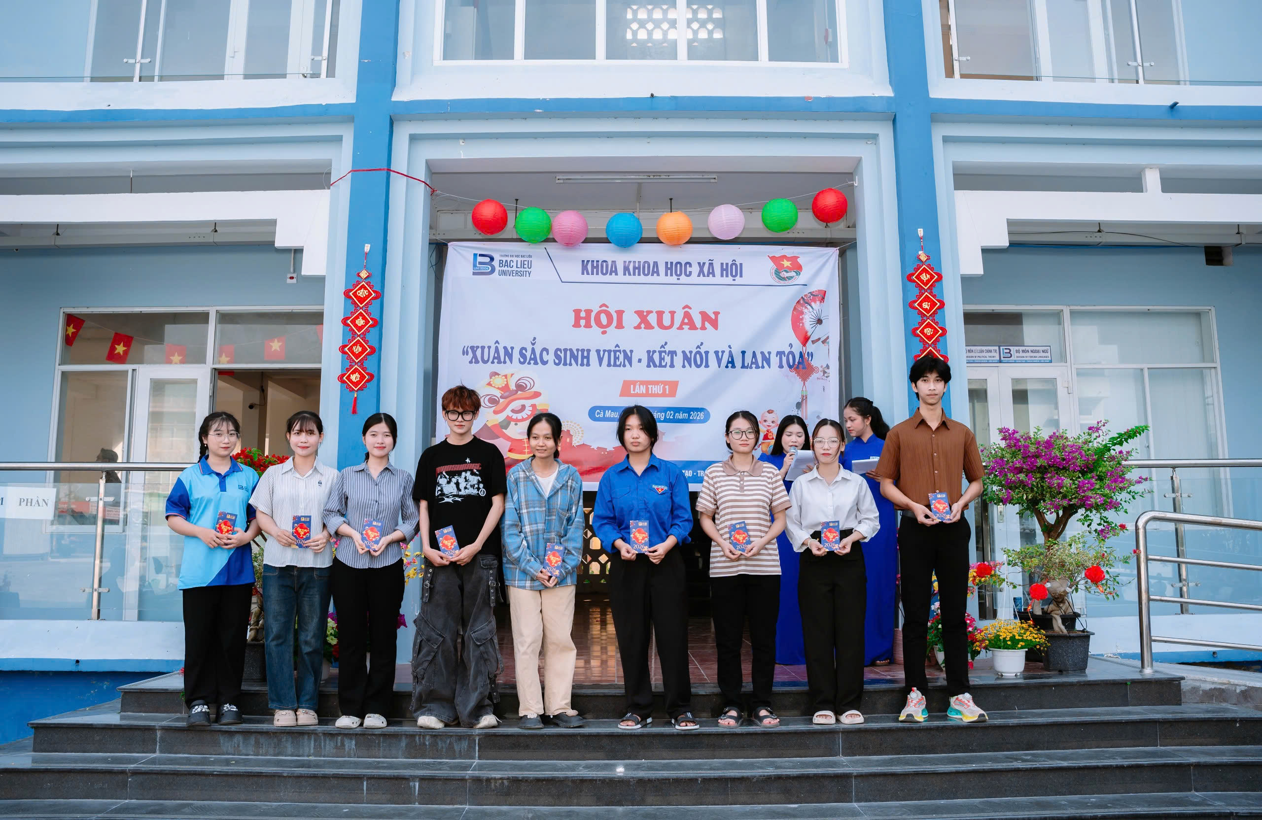 Trong chương trình khai mạc, 41 phần quà yêu thương đã được trao đến sinh viên, trong đó: 10 phần quà từ quỹ “Giúp bạn vượt khó” của Đoàn khoa Khoa học xã hội, mỗi phần 200.000đ; 31 phần quà từ sự tài trợ của Ban Từ thiện xã hội Phật giáo Bạc Liêu, kết nối quý mạnh thường quân trao mỗi suất trị giá 500.000đ. Cuộc thi “Mâm cơm ngày Tết” – điểm nhấn của Hội xuân, nơi các đội thi thể hiện sự khéo léo, sáng tạo và hiểu biết về ý nghĩa mâm cơm sum vầy trong Tết cổ truyền; cùng hoạt động Cây ước nguyện đầu Xuân, nơi thầy cô và sinh viên gửi gắm những mong ước tốt đẹp cho bản thân, gia đình và tập thể Khoa.