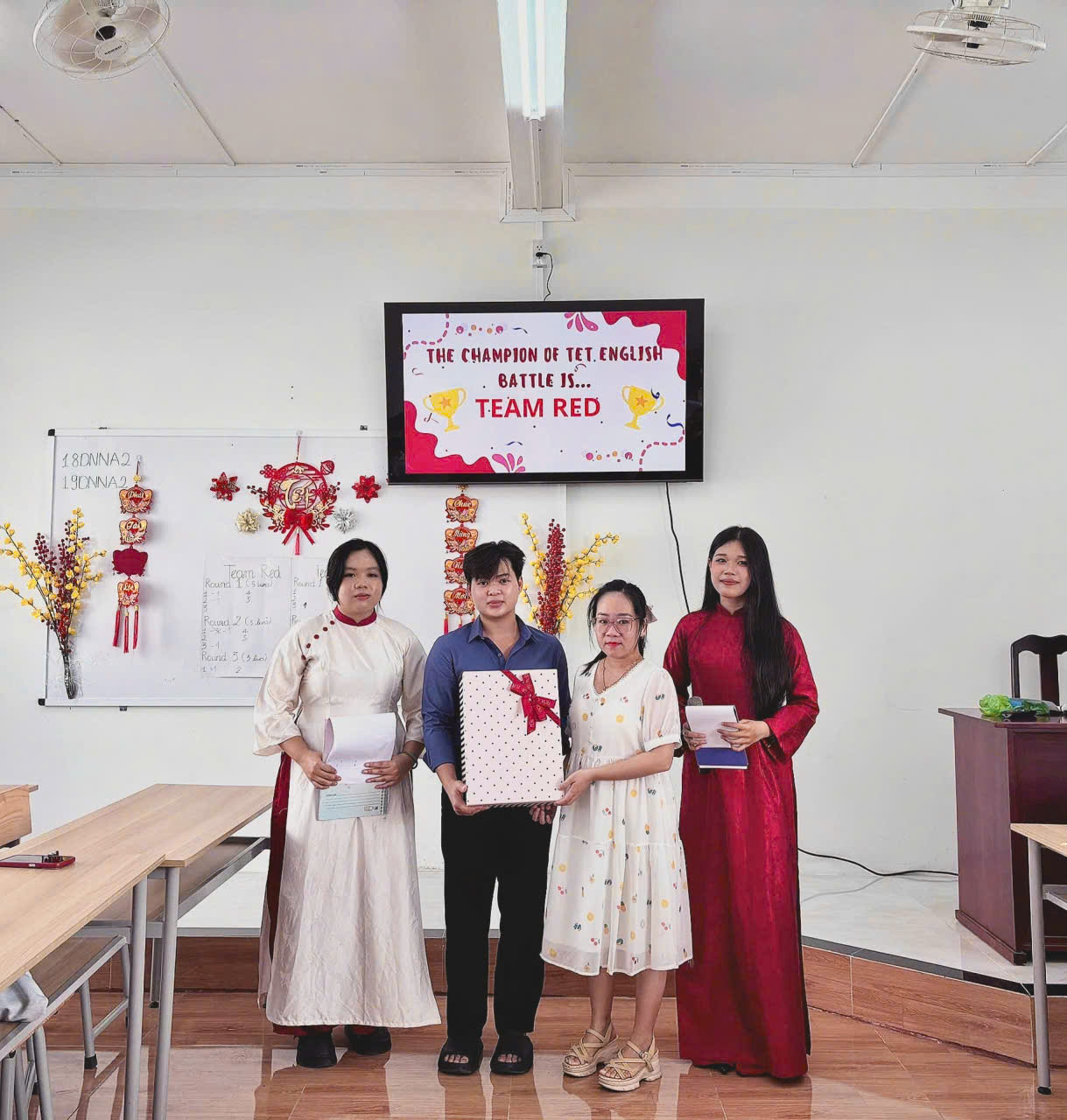 Round 1 – Word Elimination: Các đội lần lượt đưa ra từ vựng liên quan đến chủ đề Tết, rèn luyện vốn từ và khả năng phản xạ.