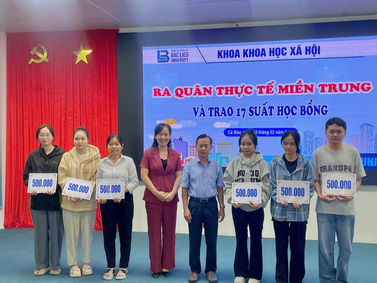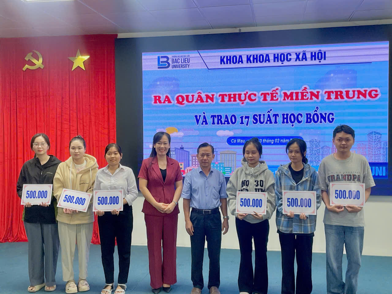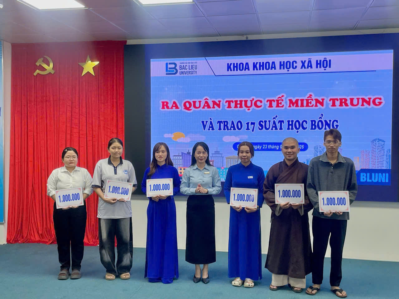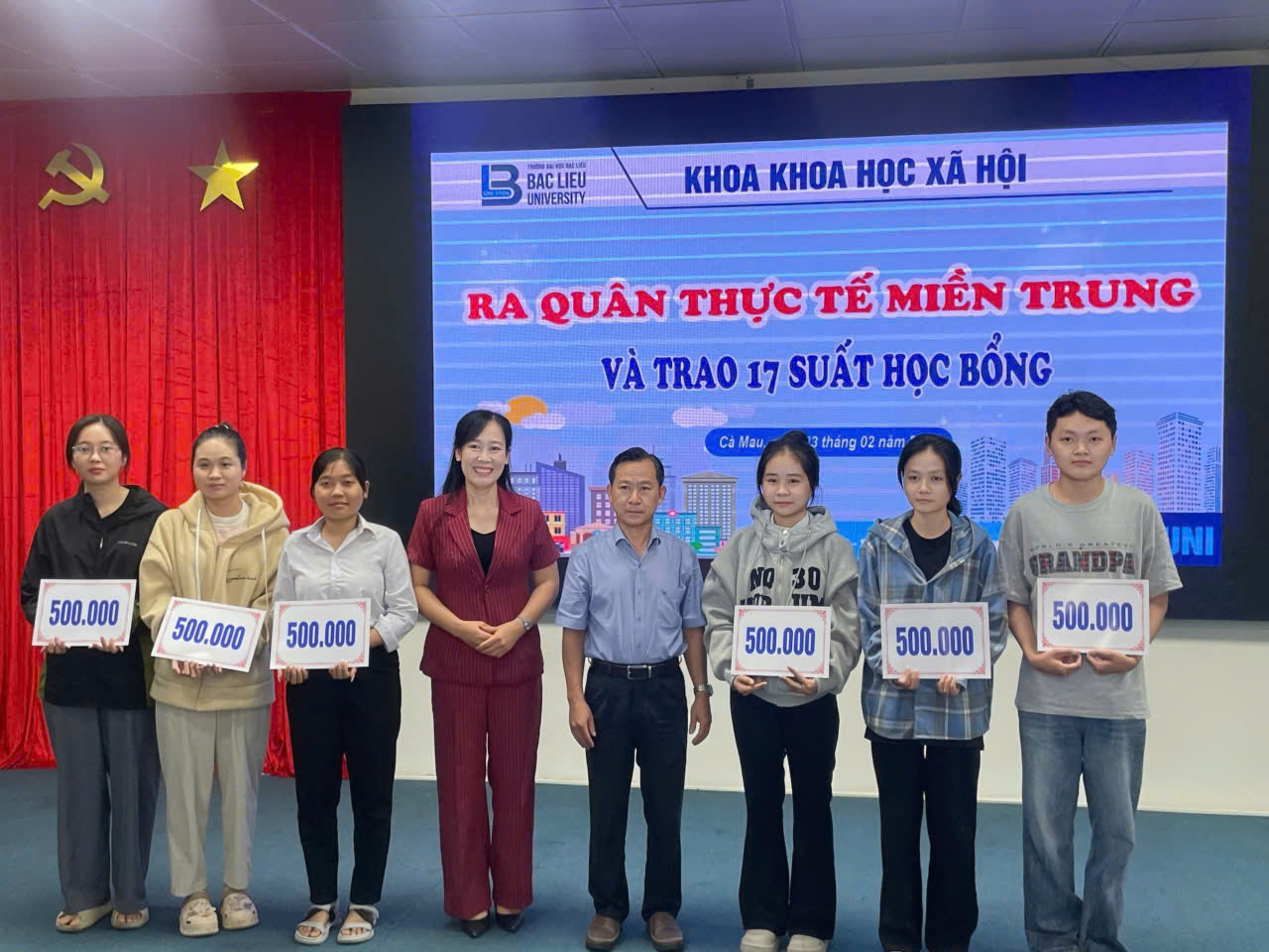Sáng ngày 23/02/2026, tại Hội trường Nhà điều hành, Cơ sở 1, Trường Đại học Bạc Liêu, Khoa Khoa học xã hội đã tổ chức chương trình Ra quân thực tế miền Trung năm 2026 dành cho sinh viên các lớp 17DTVVHVN (ngành Tiếng Việt và Văn hóa Việt Nam), 17DTA1 và 17DTA2 (ngành Ngôn ngữ Anh).