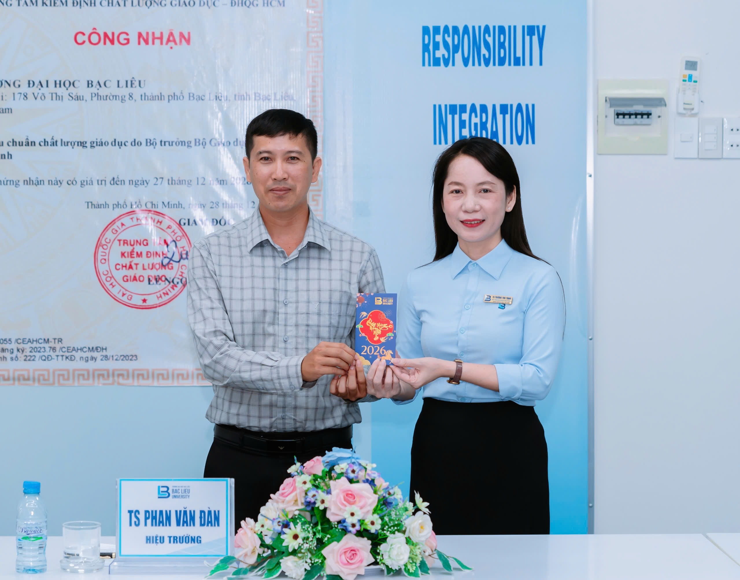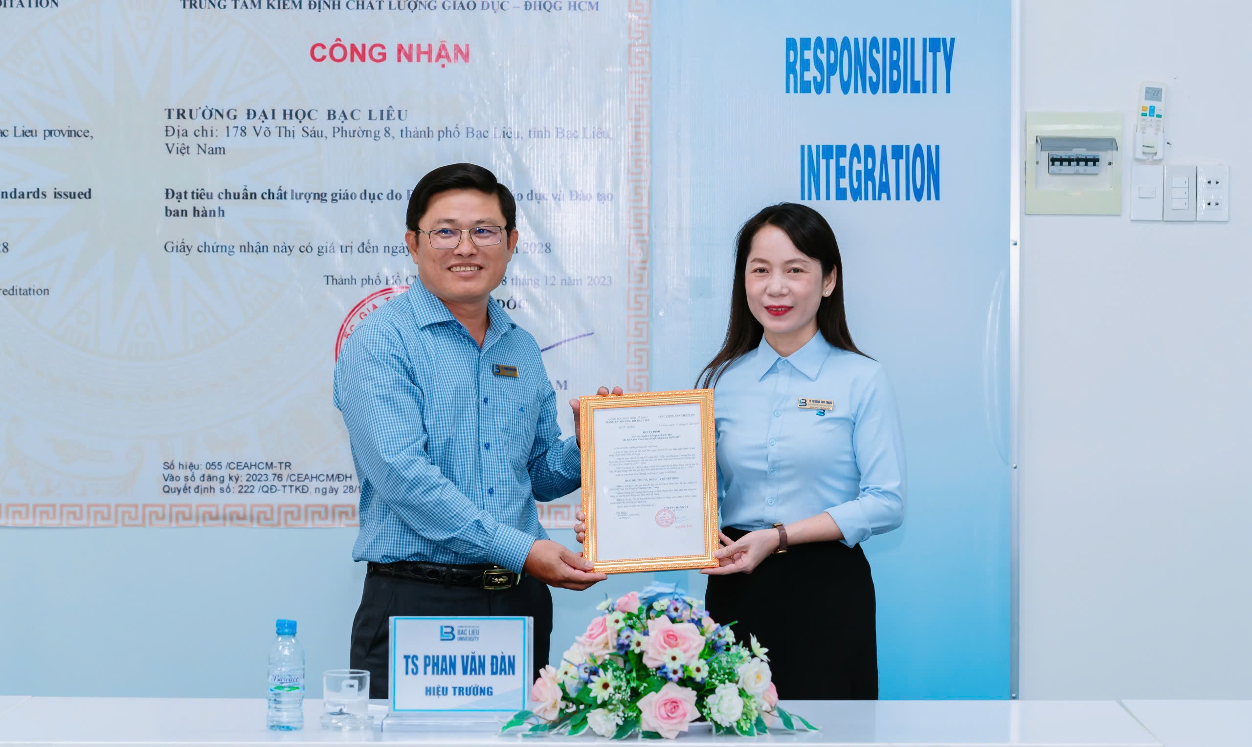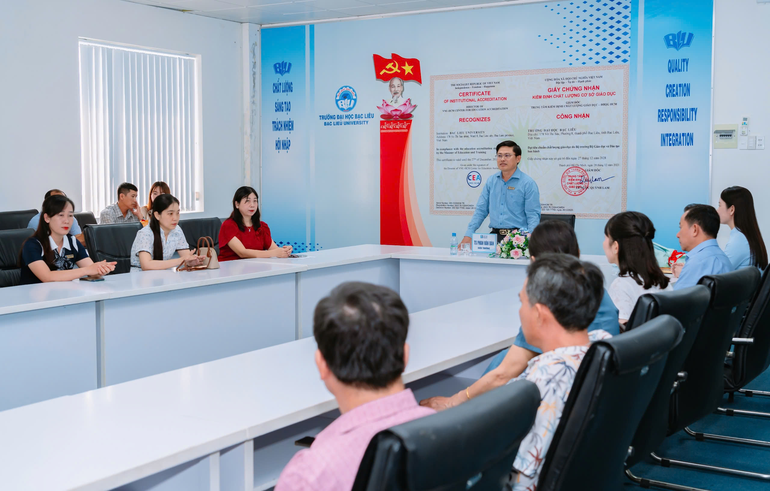 Chiều ngày 23/02/2026, tại Phòng họp giao ban, Trường Đại học Bạc Liêu, TS. Phan Văn Đàn – Phó Bí thư Đảng ủy, Hiệu trưởng Trường Đại học Bạc Liêu, đã triển khai và trao Quyết định chuẩn y kết quả bầu Bí thư Chi bộ Khoa KHXH nhiệm kỳ 2025-2027 cho TS. Trương Thu Trang – Trưởng Khoa KHXH.