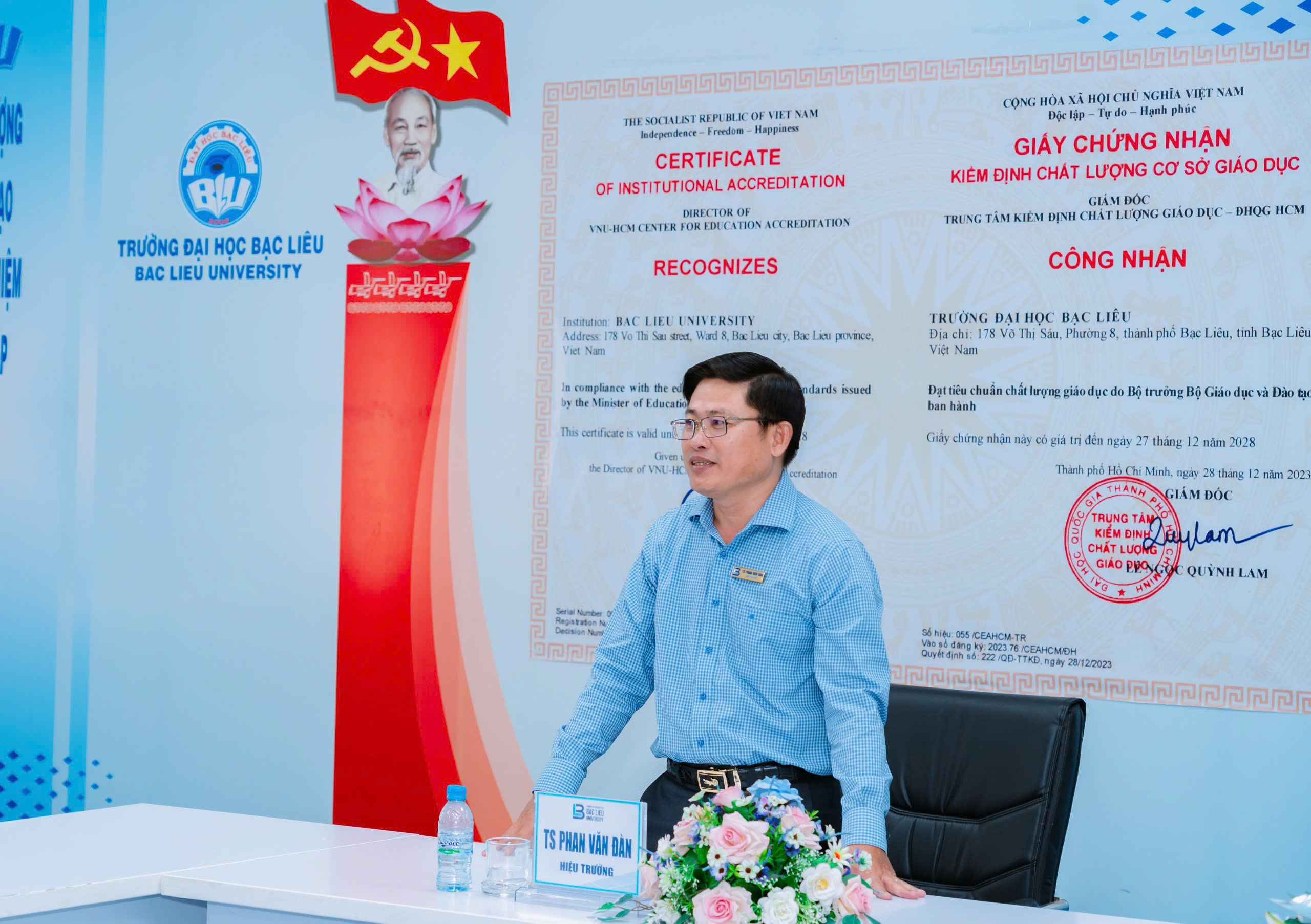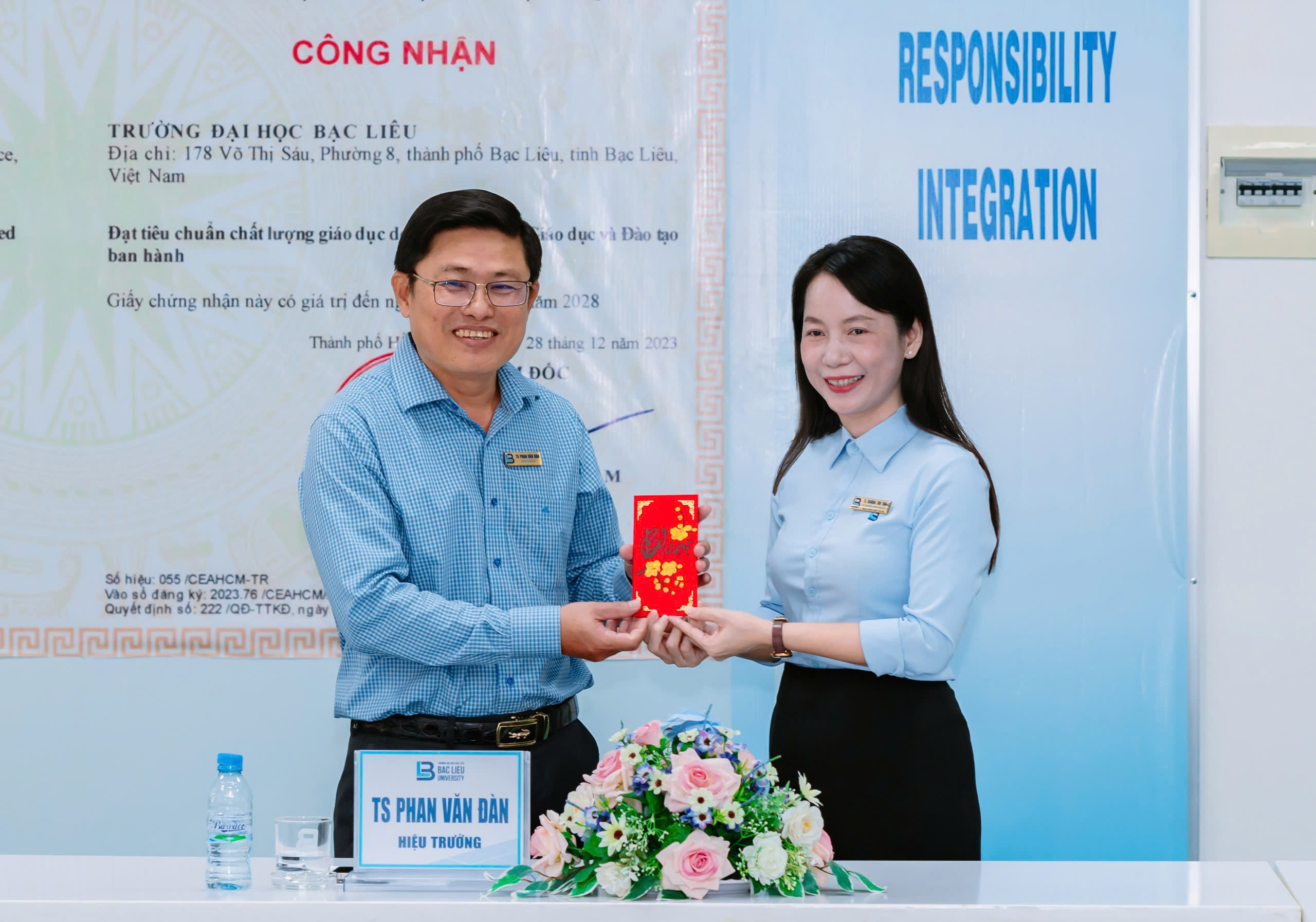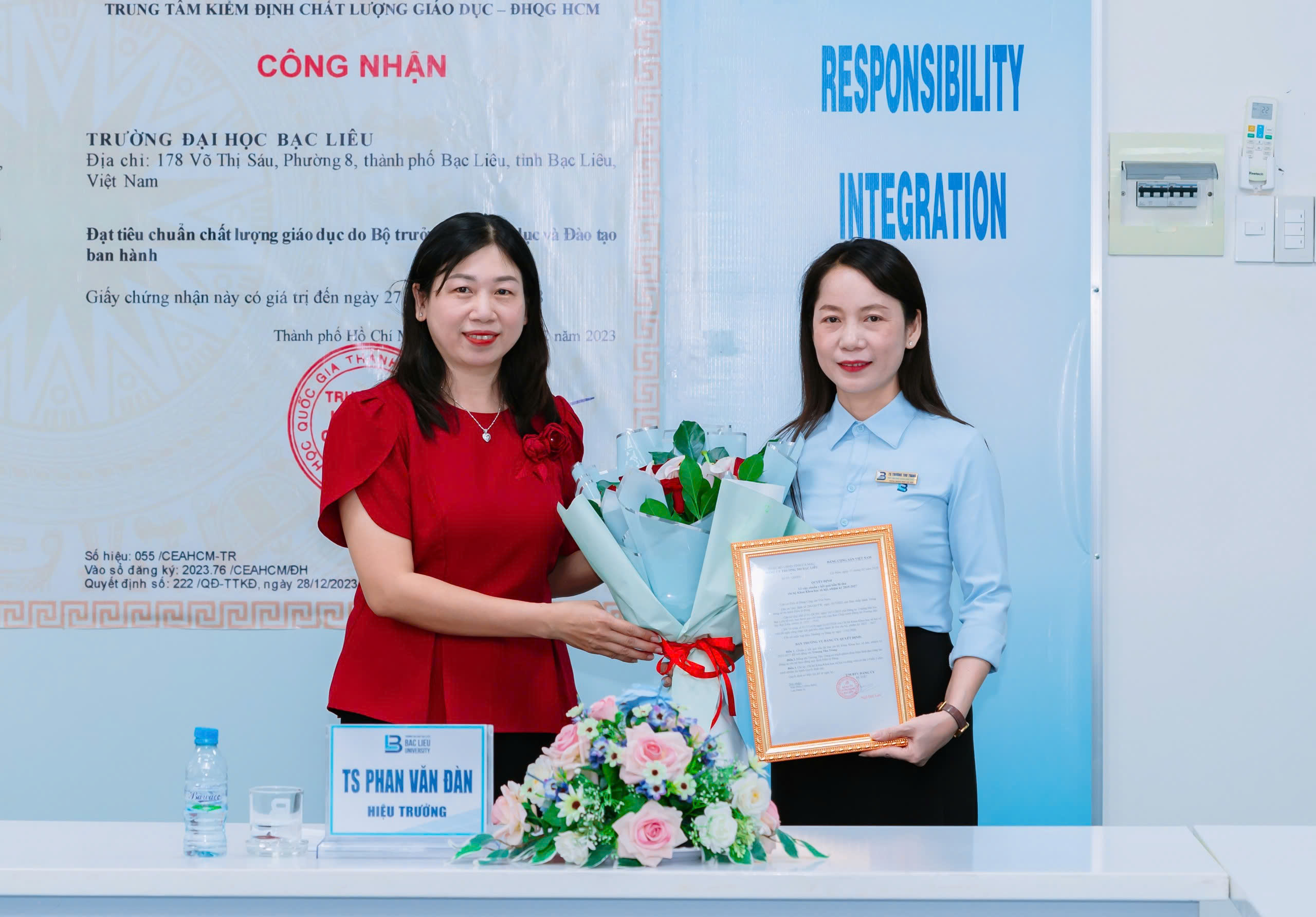 Chiều ngày 23/02/2026, tại Phòng họp giao ban, Trường Đại học Bạc Liêu, TS. Phan Văn Đàn – Phó Bí thư Đảng ủy, Hiệu trưởng Trường Đại học Bạc Liêu, đã triển khai và trao Quyết định chuẩn y kết quả bầu Bí thư Chi bộ Khoa KHXH nhiệm kỳ 2025-2027 cho TS. Trương Thu Trang – Trưởng Khoa KHXH.