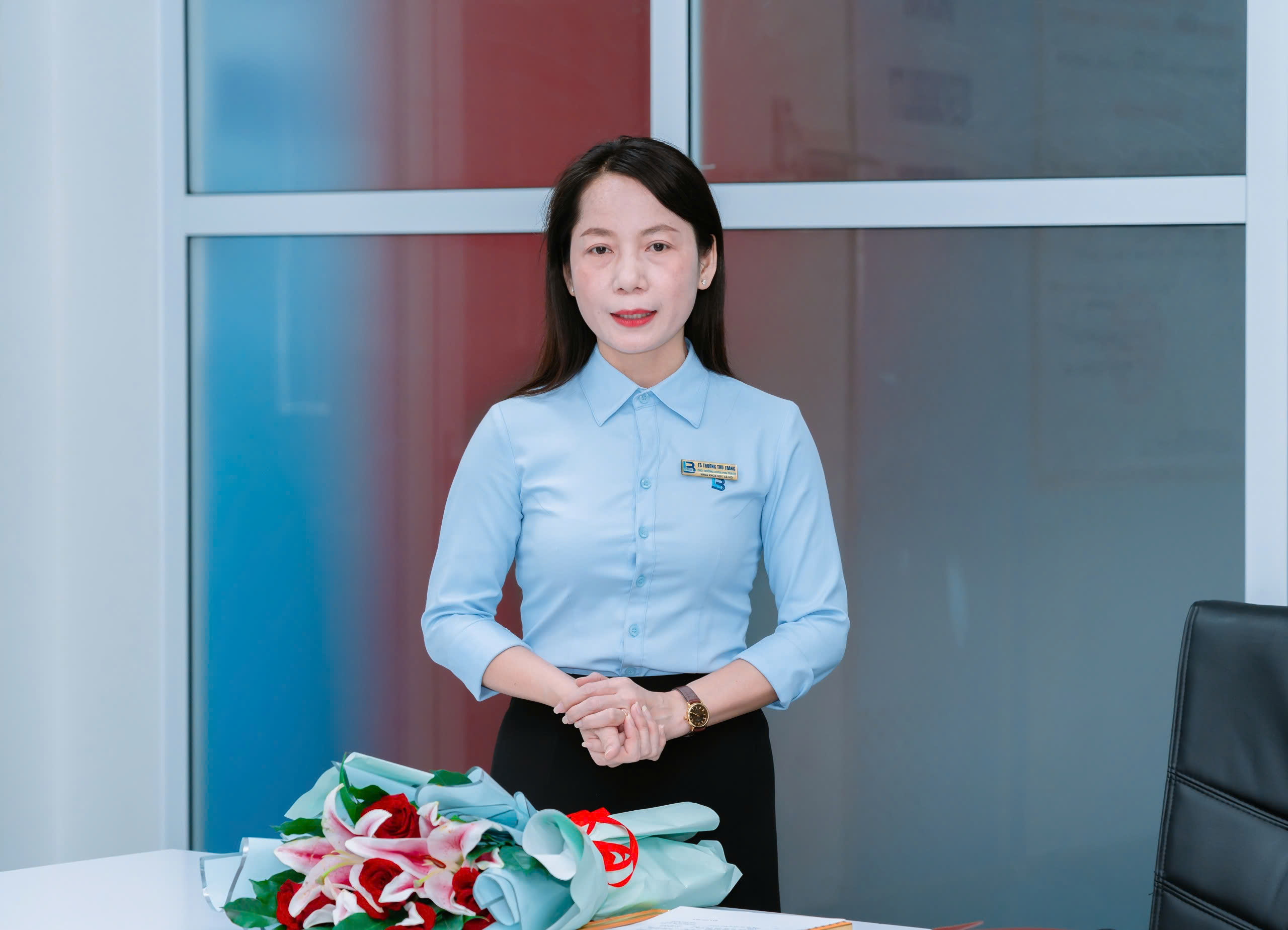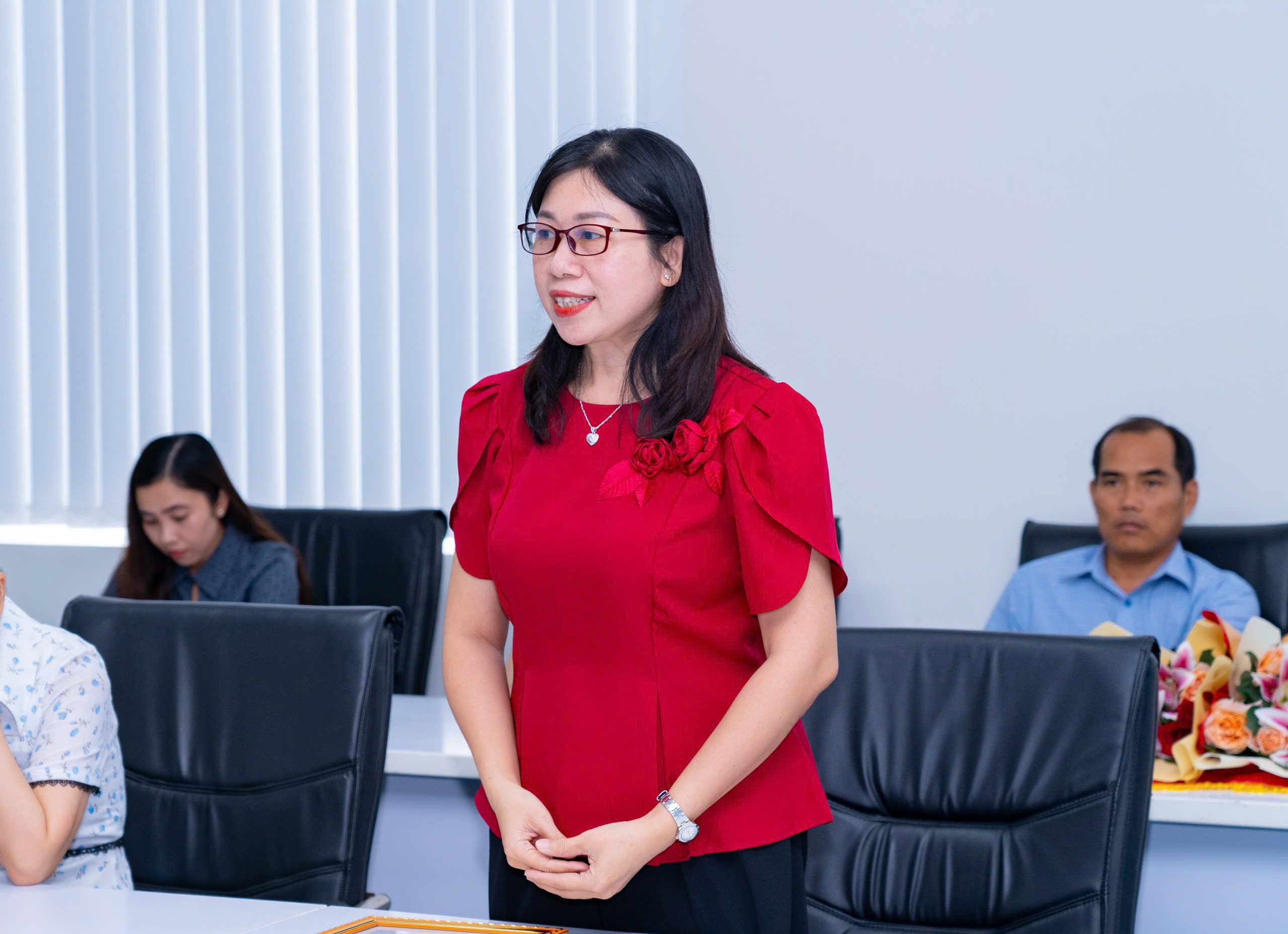 ThS. Diệp Kiều Trang – Phó Bí thư Chi bộ Khoa KHXH đã trao hoa chúc mừng và phát biểu gửi gắm niềm tin, sự ủng hộ của tập thể Chi bộ Khoa KHXH đến tân Bí thư Chi bộ.