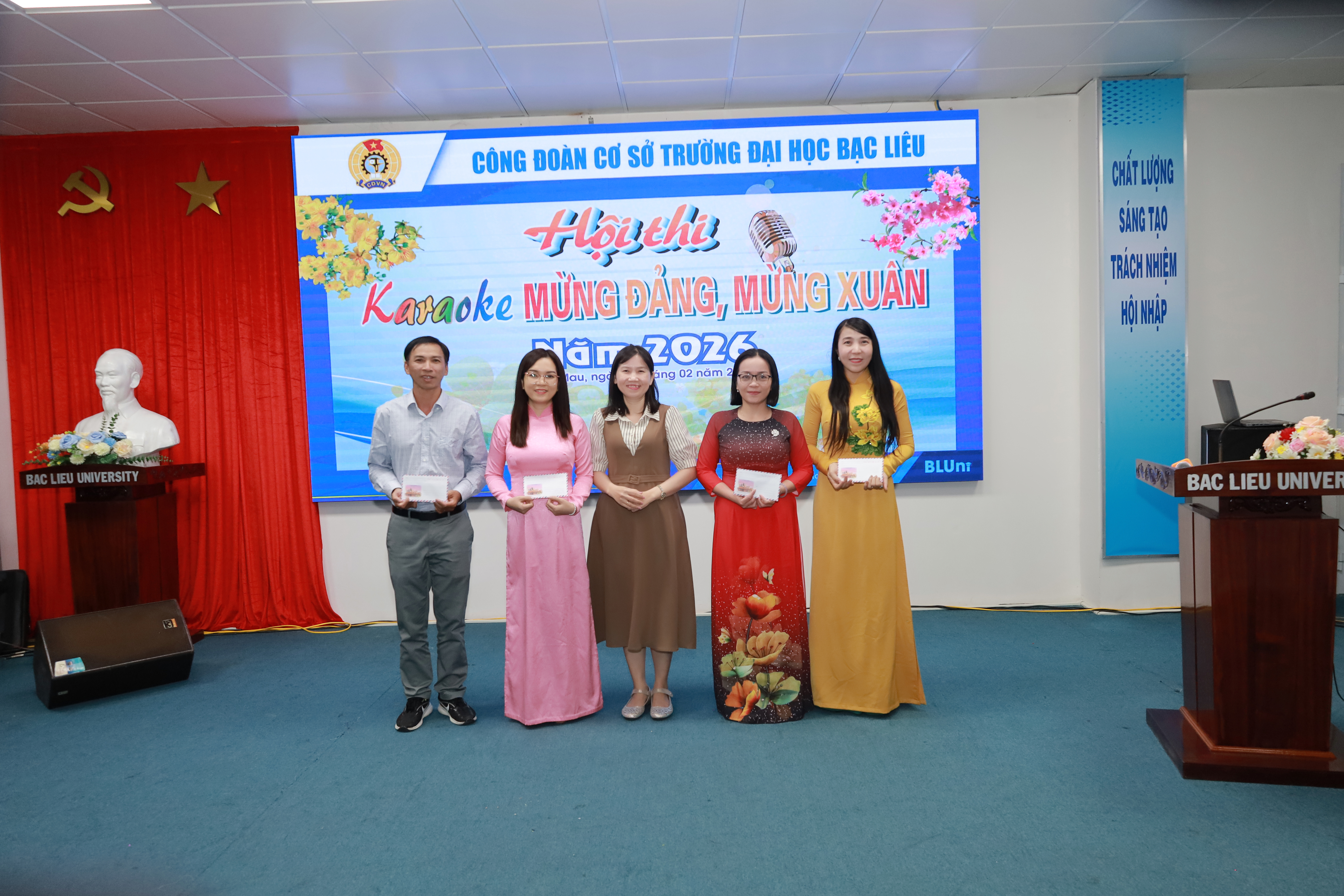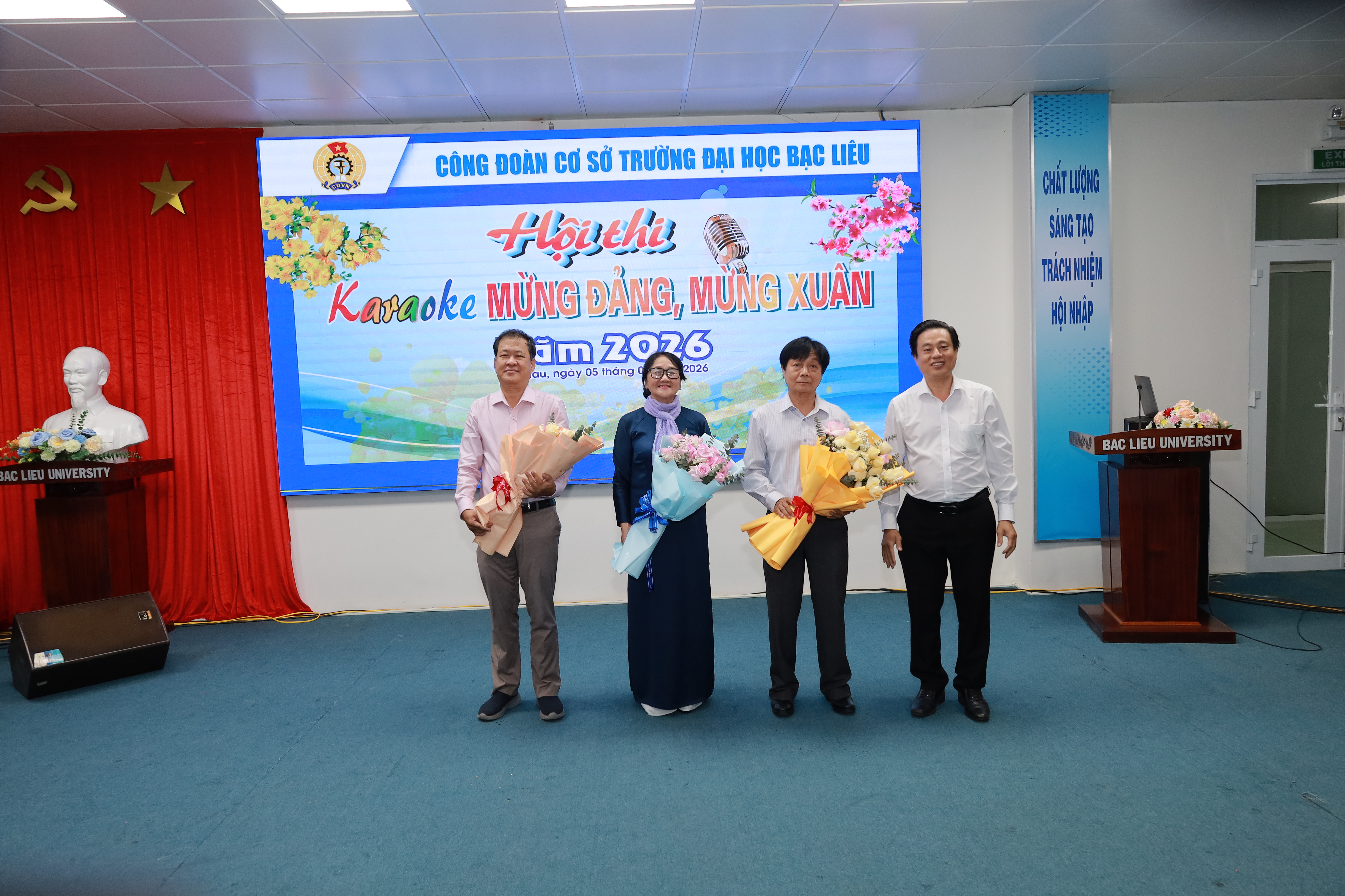 Hòa chung không khí rộn ràng chào mừng năm mới Bính Ngọ 2026 và kỷ niệm 96 năm Ngày thành lập Đảng Cộng sản Việt Nam (03/02/1930 – 03/02/2026), vào lúc 18h30 ngày 05/02/2026, Công đoàn cơ sở Trường Đại học Bạc Liêu đã tổ chức Hội thi hát karaoke “Mừng Đảng – Mừng Xuân” năm 2026, tại Hội trường Nhà điều hành.