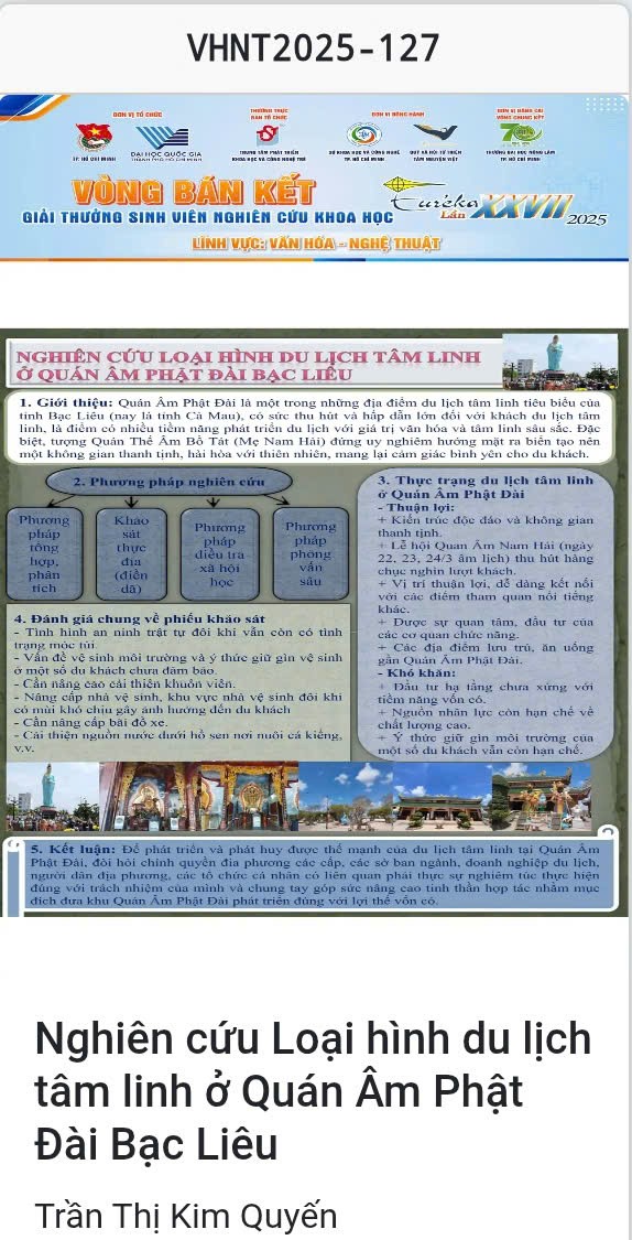 2. Đề tài: “Nghiên cứu loại hình du lịch tâm linh ở Quán Âm Phật Đài Bạc Liêu”