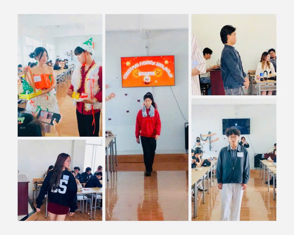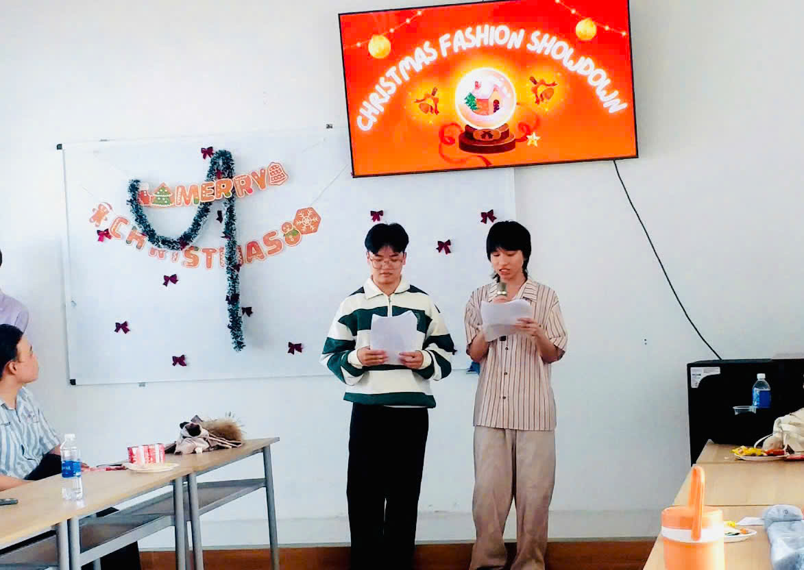 Chương trình mở đầu với hai tiết mục âm nhạc sôi động “God God God” và “Summertime Sadness” do các bạn Từ Thanh Xuân và Linh Như trình bày, dưới sự dẫn dắt của MC Anh Khoa và Công Sơn. Nhiều hoạt động liên quan đến chủ đề Giáng sinh đã được khám phá như: Trò chơi tương tác về nguồn gốc, biểu tượng, đồ trang trí và phong cách tổ chức lễ hội trên thế giới và tại Việt Nam. Cuộc thi trình diễn thời trang Giáng sinh, giúp rèn luyện kỹ năng catwalk, thuyết trình, phát huy sự sáng tạo và sự tự tin cho các bạn sinh viên.