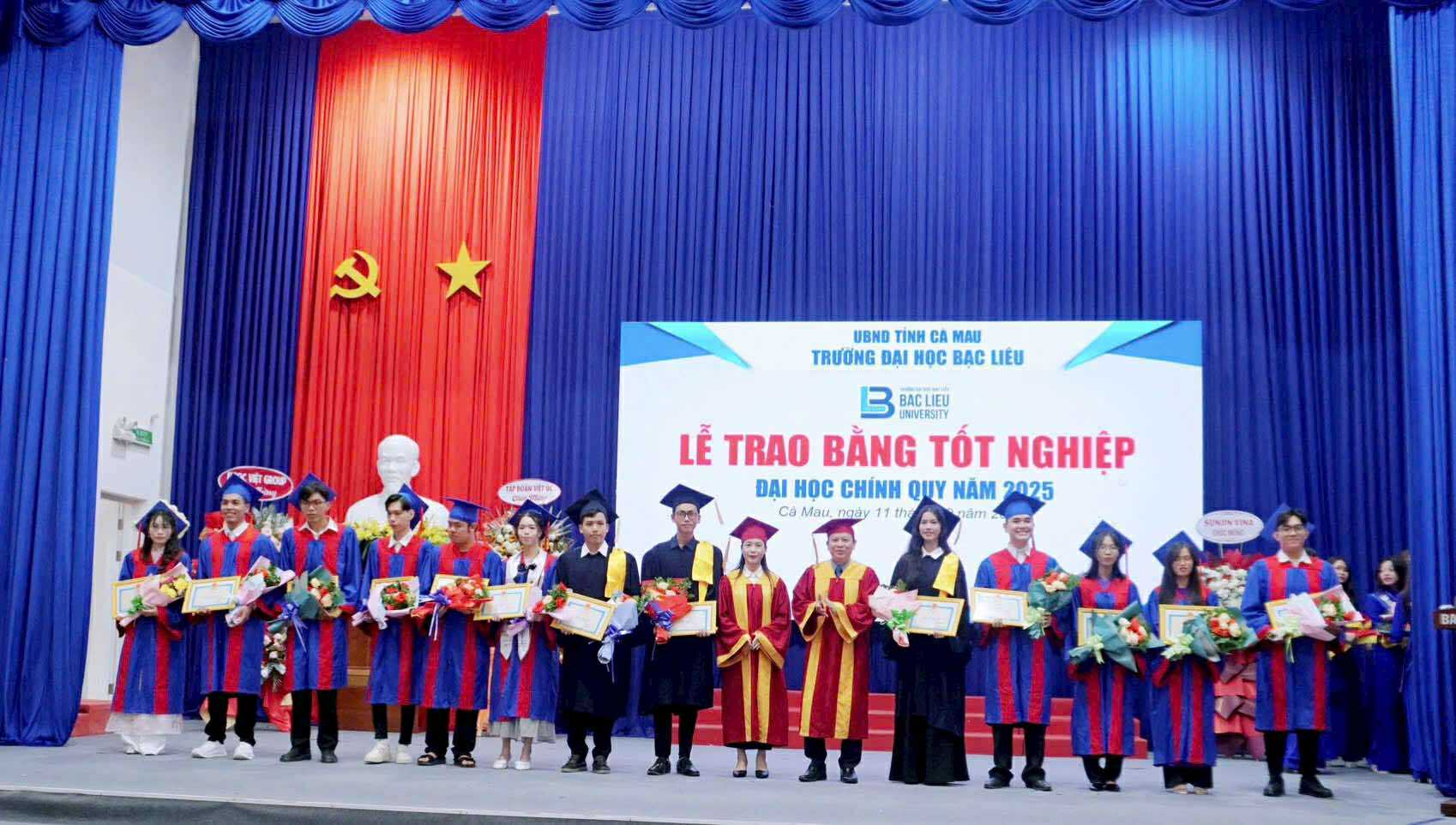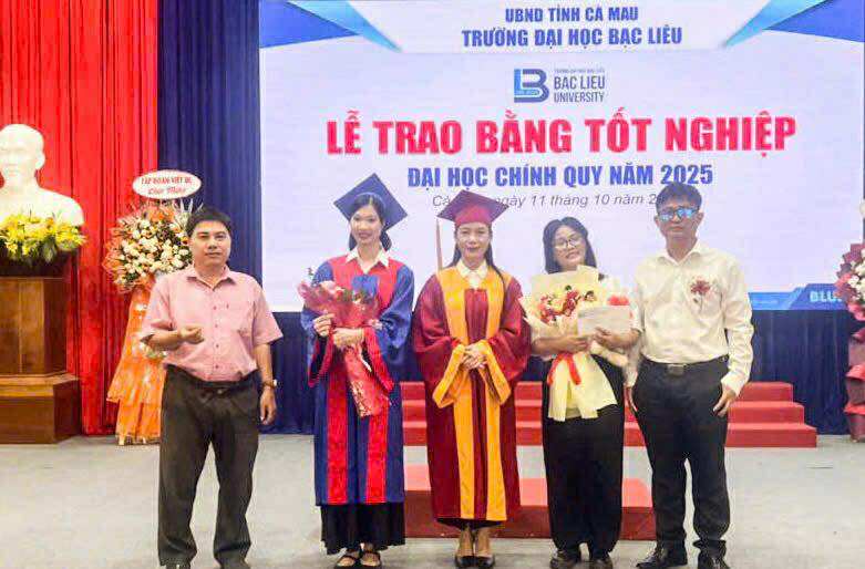 Chiều ngày 11/10/2025, Lễ trao bằng tốt nghiệp đại học, cao đẳng chính quy năm 2025 đã diễn ra trong không khí trang trọng và hân hoan tại Hội trường Cơ sở 1, Trường Đại học Bạc Liêu, đánh dấu cột mốc quan trọng trong hành trình học tập và rèn luyện của 405 tân cử nhân.