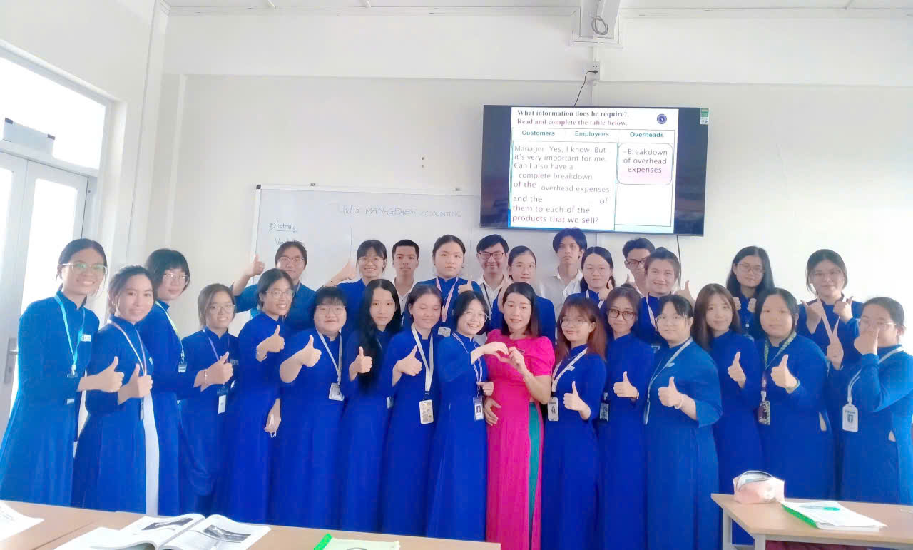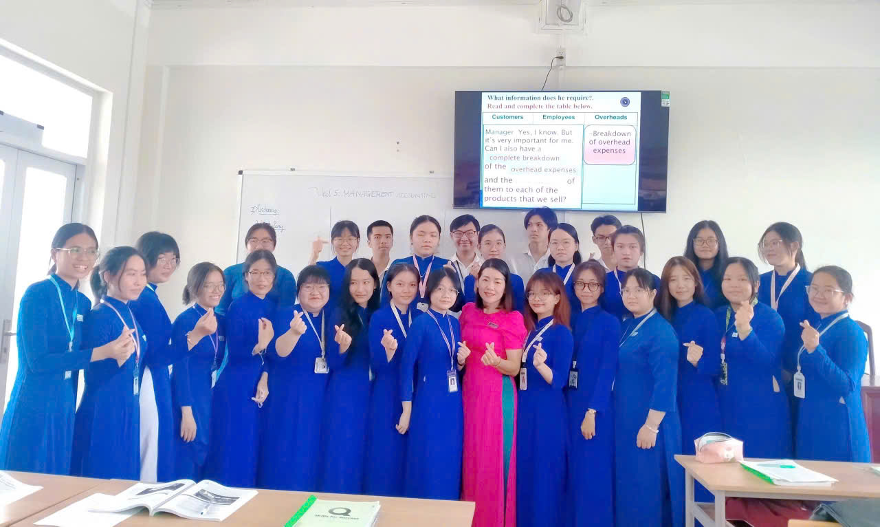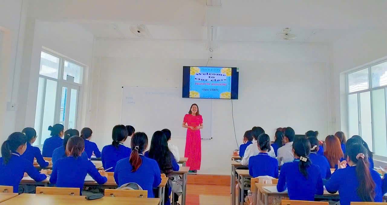 + Cô Nguyễn Thị Sang (Bộ môn Ngoại ngữ) với học phần Anh Văn chuyên ngành tại lớp 17DKT1.