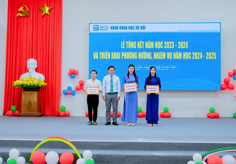 Nhằm tổng kết và phát huy những thành tích đạt được của năm học 2023-2024; đồng thời triển khai các hoạt động của năm học mới gắn liền với định hướng đào tạo của nhà trường, đáp ứng nhu cầu của xã hội trong giai đoạn hiện nay. Được sự cho phép của lãnh đạo Nhà trường, Khoa Khoa học xã hội đã tiến hành tổ chức buổi lễ Tổng kết năm học 2023 – 2024 và triển khai phương hướng, nhiệm vụ năm học 2024 -2025 vào lúc 14h30 ngày 28/10/2024 tại Hội trường lớn cơ sở 1 Trường Đại học Bạc Liêu.