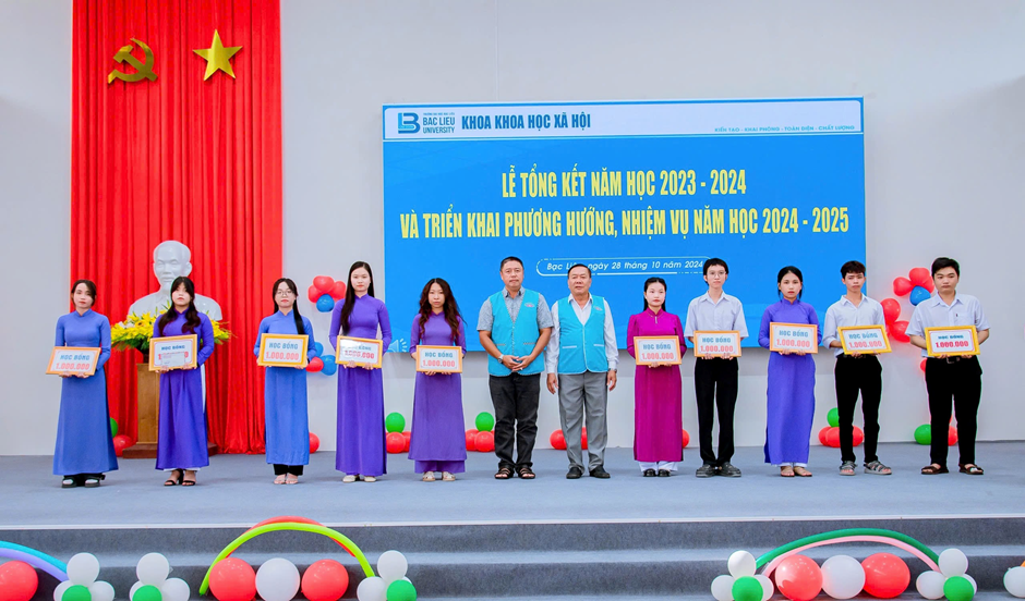 Nhằm ghi nhận những kết quả đạt được trong quá trình học tập và rèn luyện của sinh viên Khoa Khoa học xã hội, lãnh đạo nhà trường đã trao học bổng khuyến khích học tập cho 03 sinh viên đạt loại xuất sắc và 07 sinh viên đạt loại giỏi trong học kỳ 2, năm học 2023-2024.
