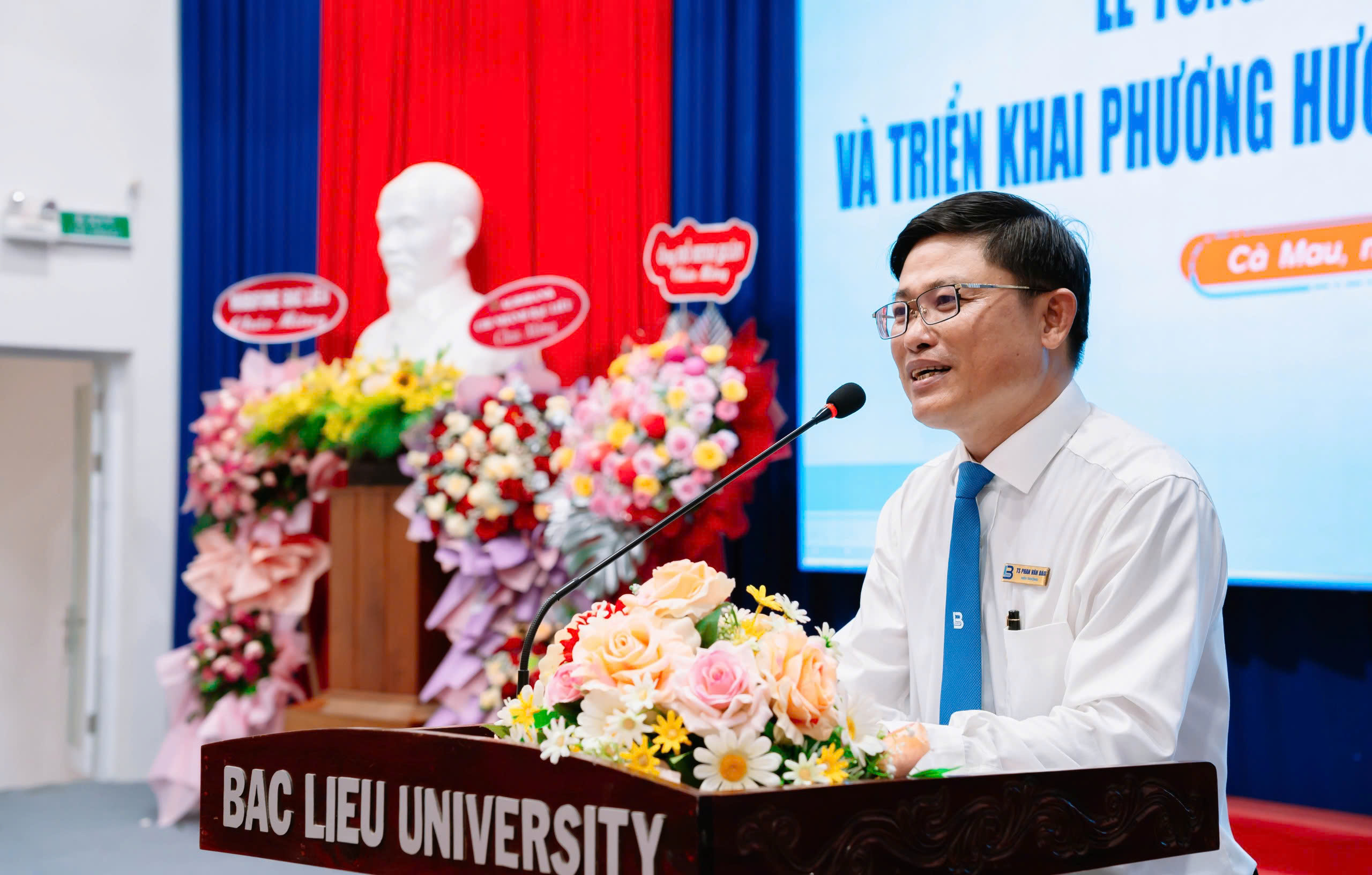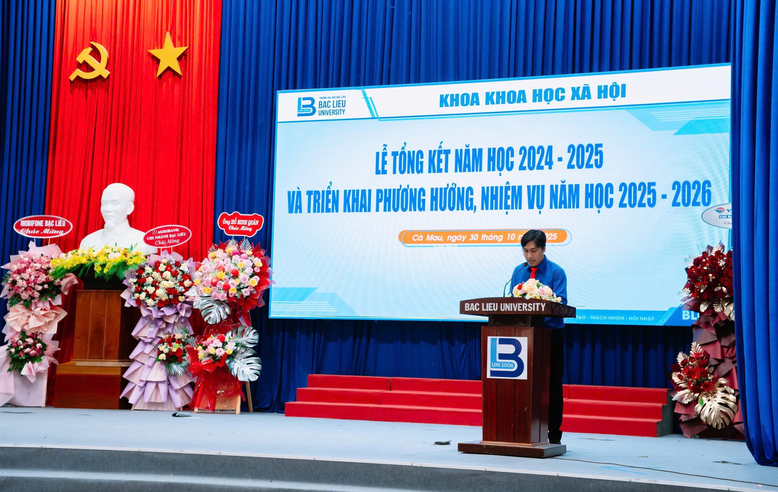 Phát biểu chỉ đạo, TS. Phan Văn Đàn – Hiệu trưởng Trường Đại học Bạc Liêu biểu dương những kết quả mà Khoa KHXH đã đạt được, đồng thời định hướng Khoa tiếp tục phát huy thế mạnh, nâng cao chất lượng đào tạo và đẩy mạnh gắn kết giữa giảng dạy – nghiên cứu – phục vụ cộng đồng trong năm học mới.