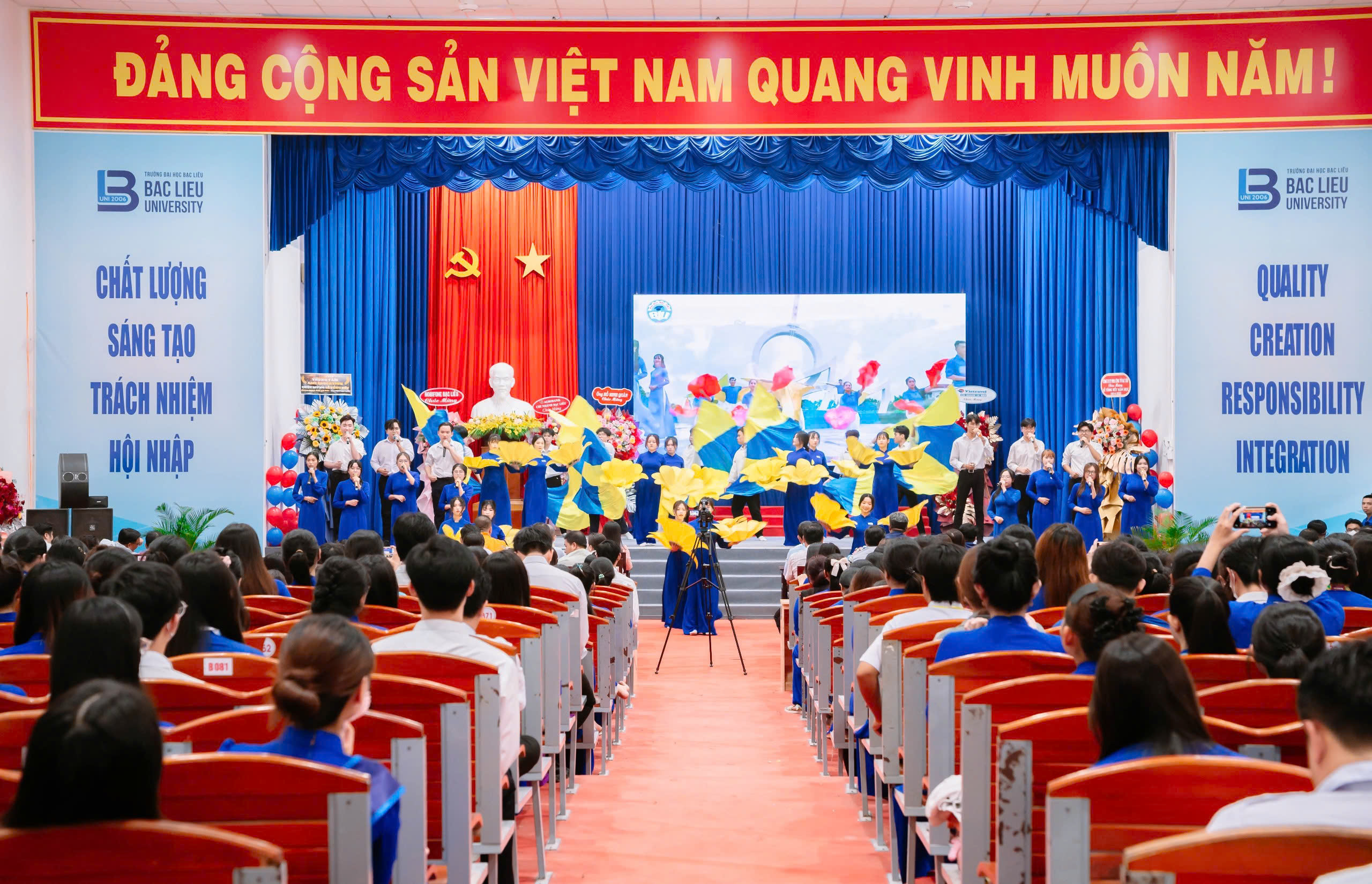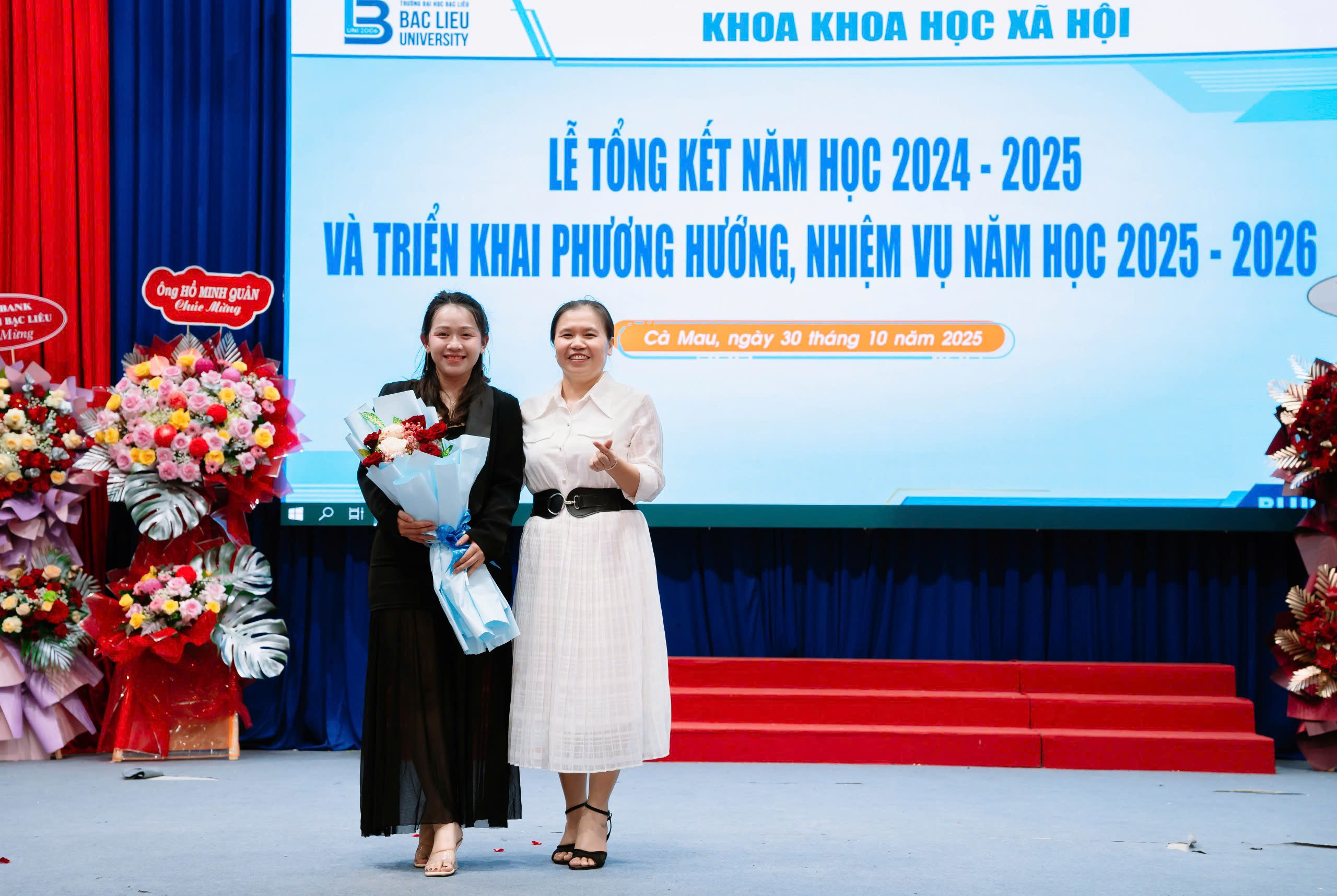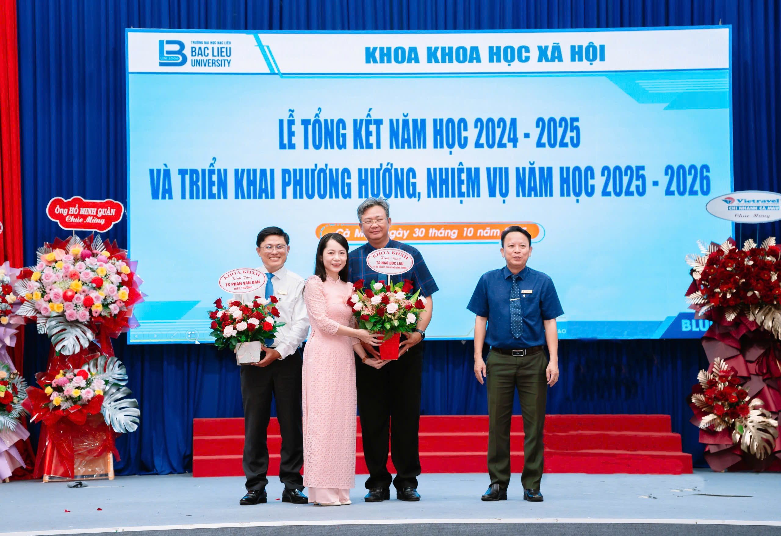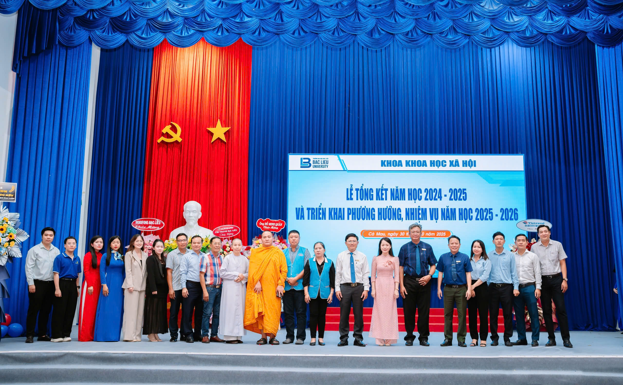 Chiều ngày 30/10/2025, tại Hội trường lớn Cơ sở 1 - Trường Đại học Bạc Liêu, Khoa Khoa học xã hội (KHXH) đã long trọng tổ chức Lễ tổng kết năm học 2024–2025 và triển khai phương hướng, nhiệm vụ năm học 2025–2026. Buổi lễ là dịp để tập thể Khoa nhìn lại những kết quả nổi bật trong công tác đào tạo, nghiên cứu khoa học và phục vụ cộng đồng; đồng thời bày tỏ lòng tri ân sâu sắc đến các đơn vị, cá nhân và doanh nghiệp đã đồng hành cùng sự phát triển của Khoa trong suốt năm học vừa qua.