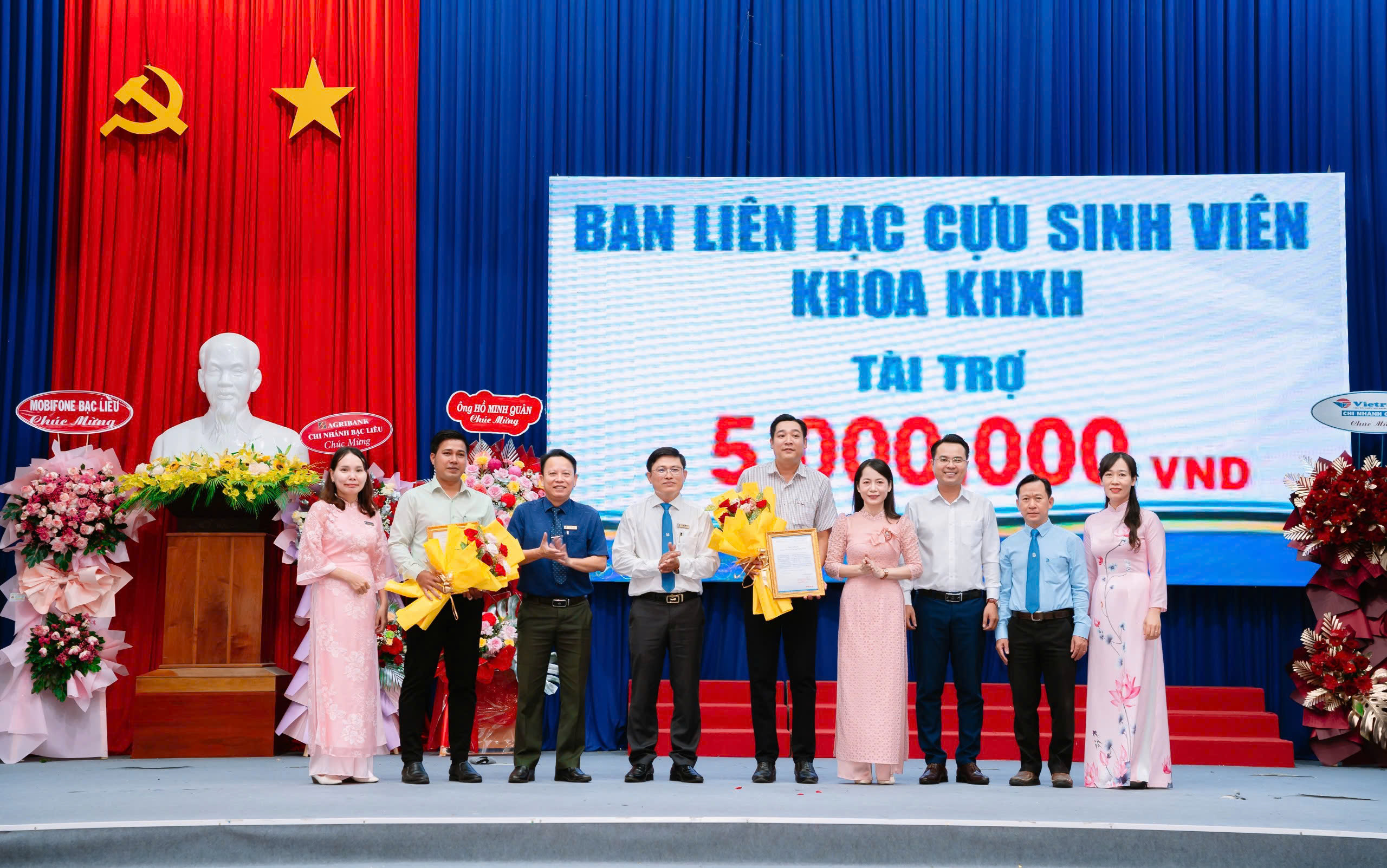 Ngoài ra, nhiều doanh nghiệp, tổ chức và cựu sinh viên còn bày tỏ sự đồng hành cùng Khoa trong công tác giáo dục và hỗ trợ sinh viên thông qua việc hỗ trợ Quỹ hoạt động của Khoa, tiêu biểu như: Công ty CP Bia Sài Gòn – Bạc Liêu, Ngân hàng VietinBank – Chi nhánh Bạc Liêu, Công ty TNHH Thương mại dịch vụ Vietnice, Công ty TNHH Một thành viên Chăn nuôi Khải Hoàn, Khách sạn Sài Gòn Bạc Liêu, Khu sinh thái Ẩm thực Cánh đồng Cậu Ba, Công ty TNHH Giáo dục Kỳ Nguyên, Trung tâm Anh ngữ Bé Thông Minh BBSMART English và Ban Liên lạc Cựu sinh viên Khoa KHXH.