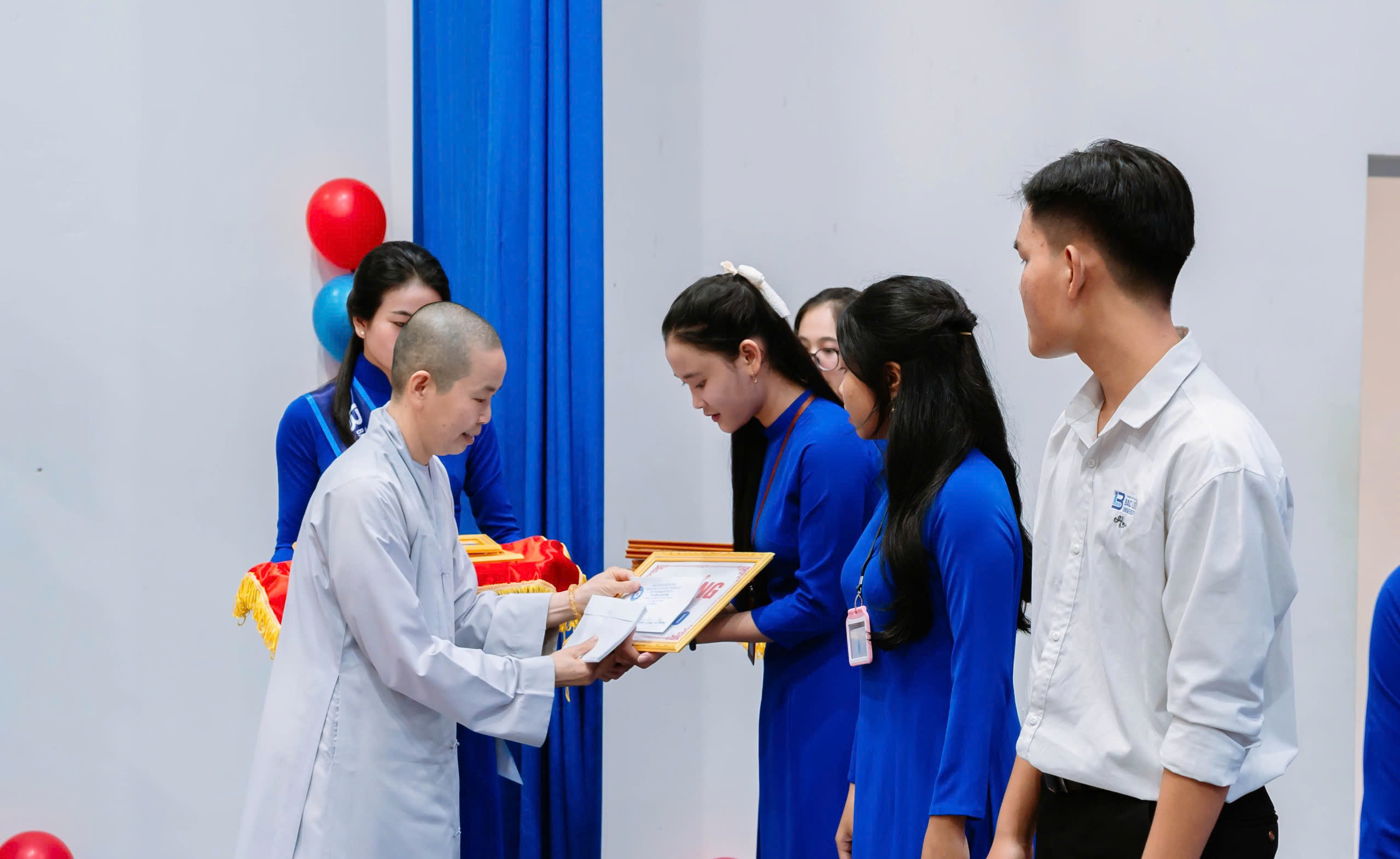 Tại buổi lễ, đại diện các nhà tài trợ, bà Nguyễn Kim Lý – Trưởng ban Từ thiện xã hội Phật giáo Tỉnh - cũng có những phát biểu ý nghĩa, ghi nhận tinh thần học tập của sinh viên, bày tỏ niềm tin vào sự phát triển của Khoa và khẳng định tiếp tục đồng hành.