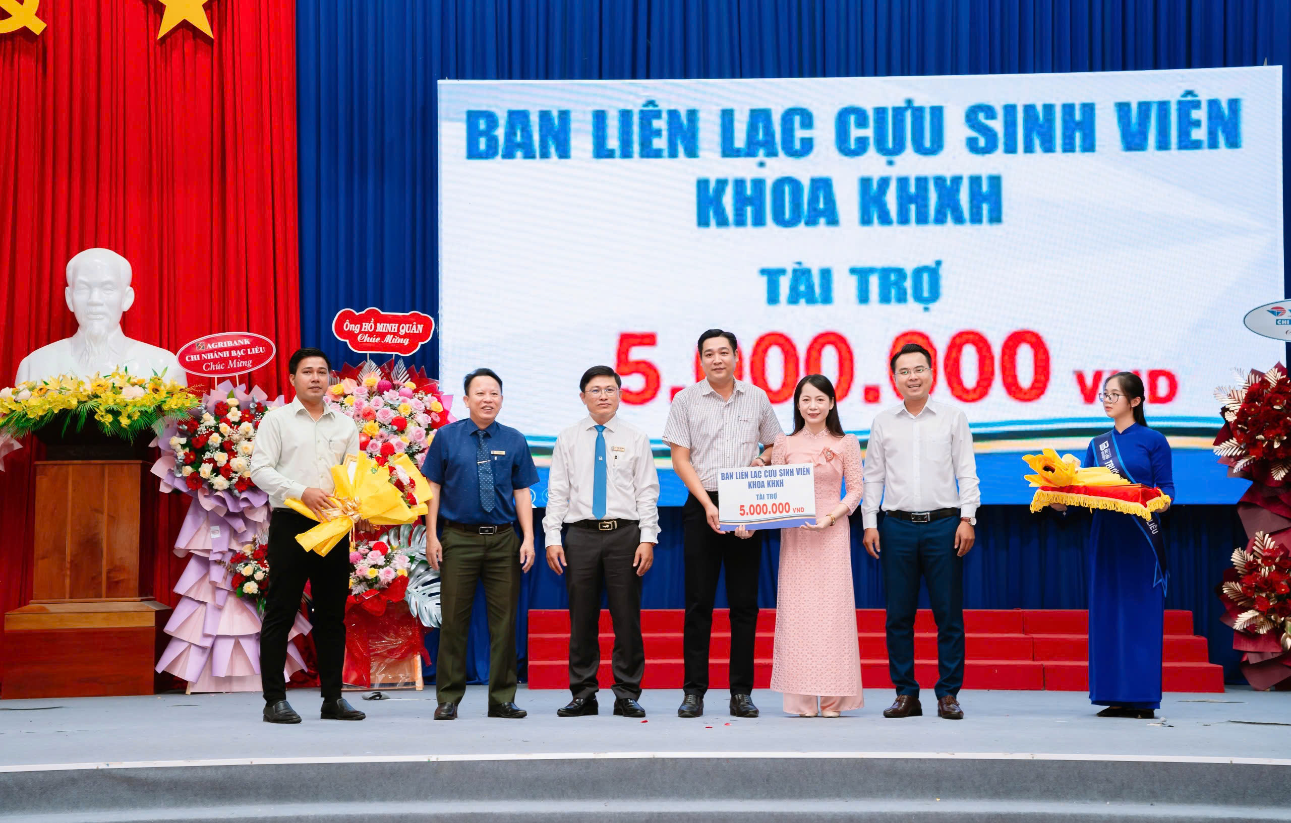 Như vậy trong buổi lễ, Khoa Khoa học xã hội đã đón nhận tổng cộng 81 triệu đồng từ quý nhà tài trợ. Trong đó 45 triệu đồng được trao học bổng cho 45 bạn sinh viên, mỗi suất 1.000.000đ; 36 triệu đồng trao vào quỹ hoạt động và hỗ trợ sinh viên của Khoa trong năm học 2025-2026; cùng nhiều đơn vị đã trân trọng gửi tặng lẵng hoa chúc mừng, góp cho buổi lễ thêm phần long trọng.