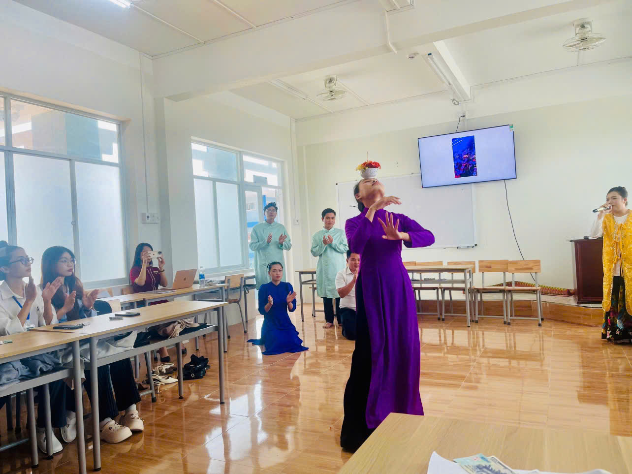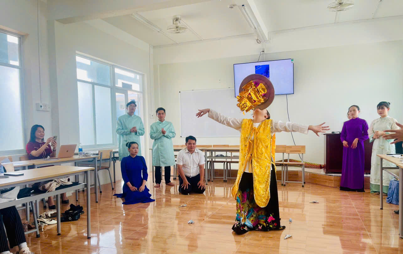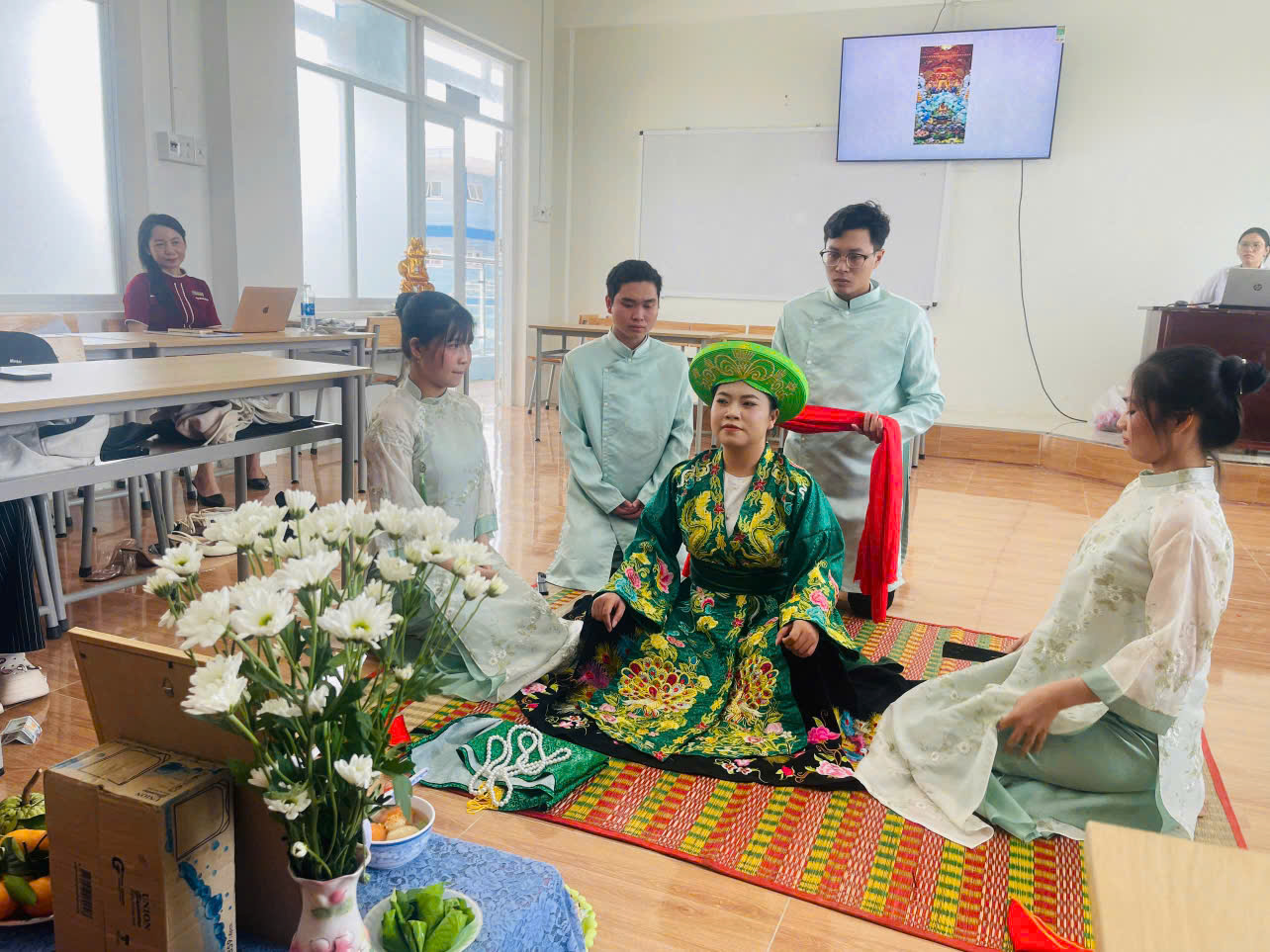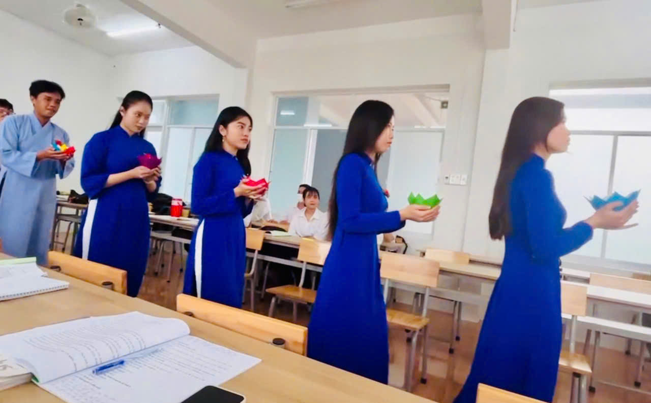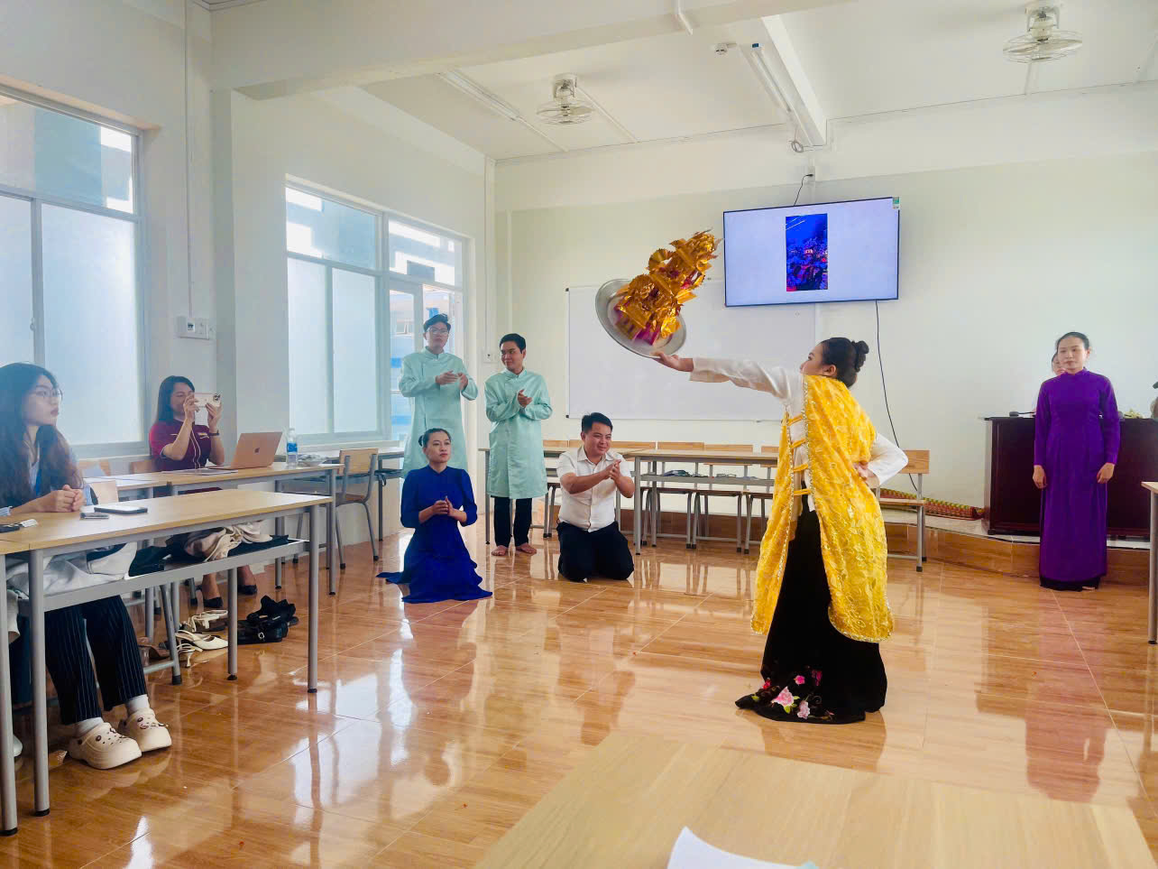 Trên lớp, sinh viên cũng tổ chức thực hành mô phỏng nghi lễ, trình bày kết quả khảo sát và thảo luận chuyên đề, giúp khắc sâu kiến thức và kết nối lý thuyết với thực tiễn. Với thái độ nghiêm túc và tinh thần học hỏi, sinh viên đã thu thập được nhiều tư liệu sống động, góp phần giúp các em hiểu sâu hơn về niềm tin, giá trị tinh thần, cũng như sự đa dạng văn hoá tôn giáo trên thế giới và Việt Nam.
