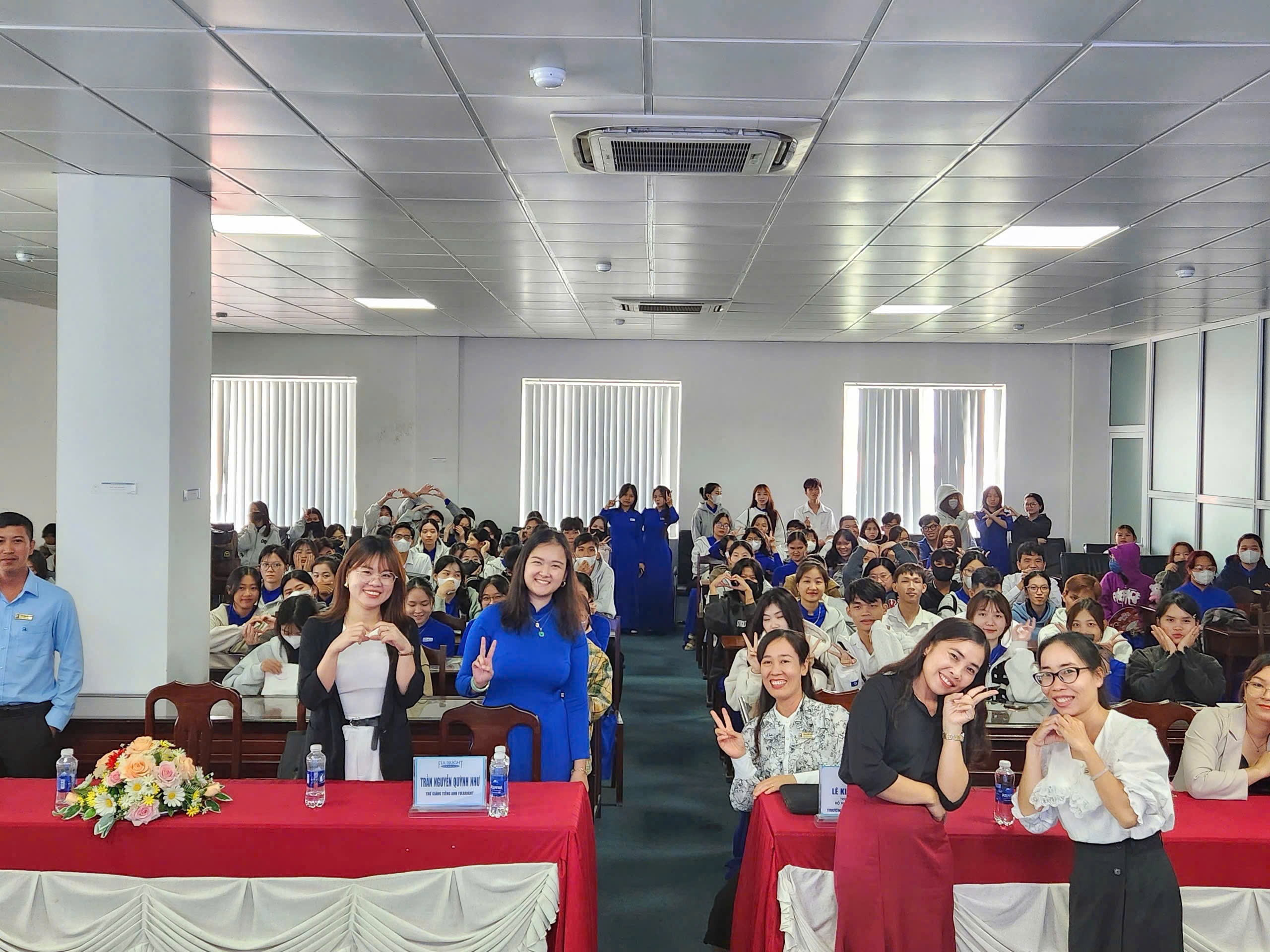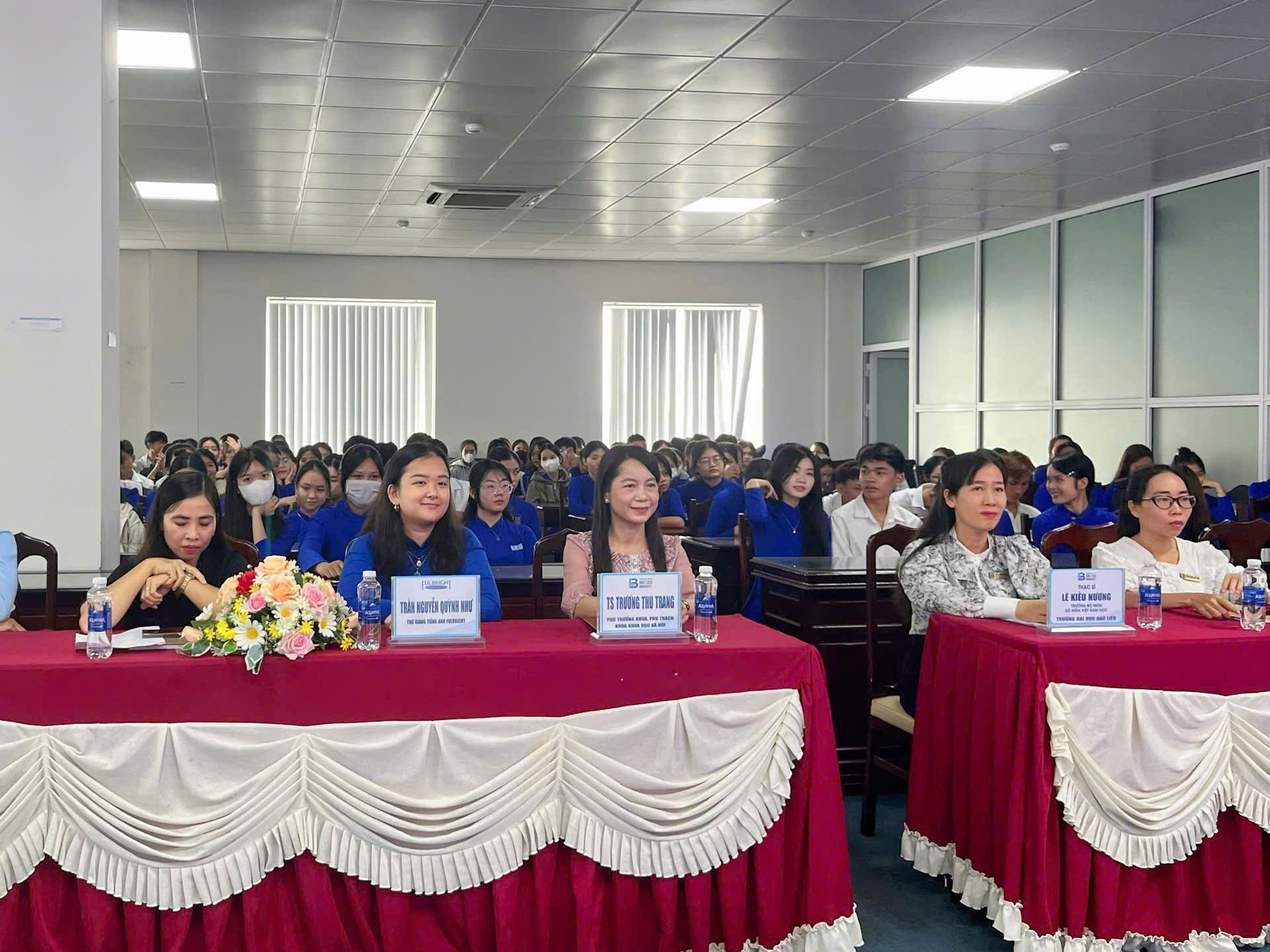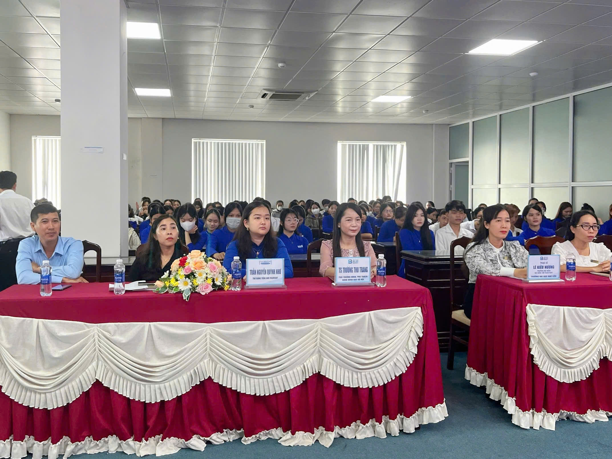 Tham dự chương trình có TS. Trương Thu Trang – Phó Trưởng khoa, Phụ trách Khoa Khoa học xã hội; ThS. Lê Kiều Nương – Trưởng Bộ môn Việt Nam học, Chủ trì tọa đàm; Cô Trần Nguyễn Quỳnh Như – Trợ giảng tiếng Anh thuộc chương trình Fulbright, cùng quý thầy cô giảng viên, cố vấn học tập, đại diện sinh viên khóa 16, 17, 18 và toàn thể tân sinh viên K19.