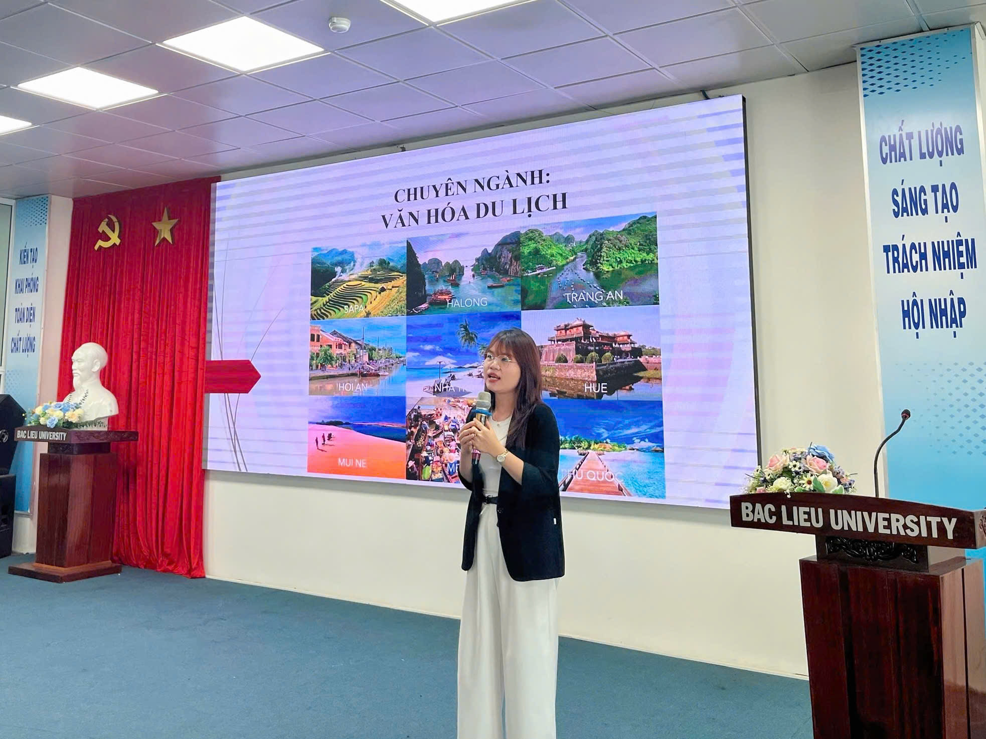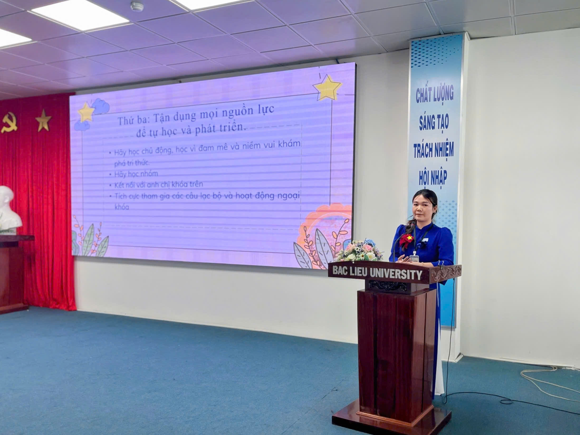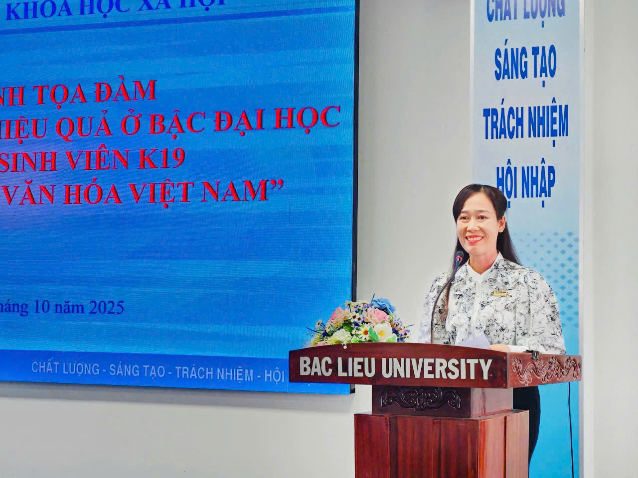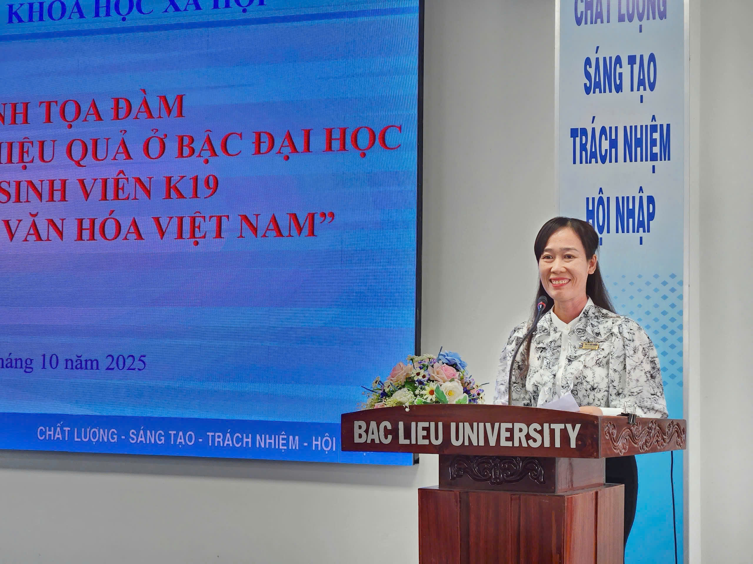 Sáng ngày 27/10/2025, tại Hội trường Nhà Điều hành (Cơ sở 1), Trường Đại học Bạc Liêu, Bộ môn Việt Nam học trực thuộc Khoa Khoa học xã hội, đã tổ chức buổi tọa đàm với chủ đề “Phương pháp học tập hiệu quả ở bậc đại học dành cho tân sinh viên ngành Tiếng Việt và Văn hóa Việt Nam”. Đây là hoạt động có ý nghĩa quan trọng, nhằm trang bị kịp thời các phương pháp học tập, kỹ năng mềm và tư duy tự chủ, giúp hơn 100 tân sinh viên K19 tự tin định hướng và hòa nhập thành công vào môi trường học tập mới.