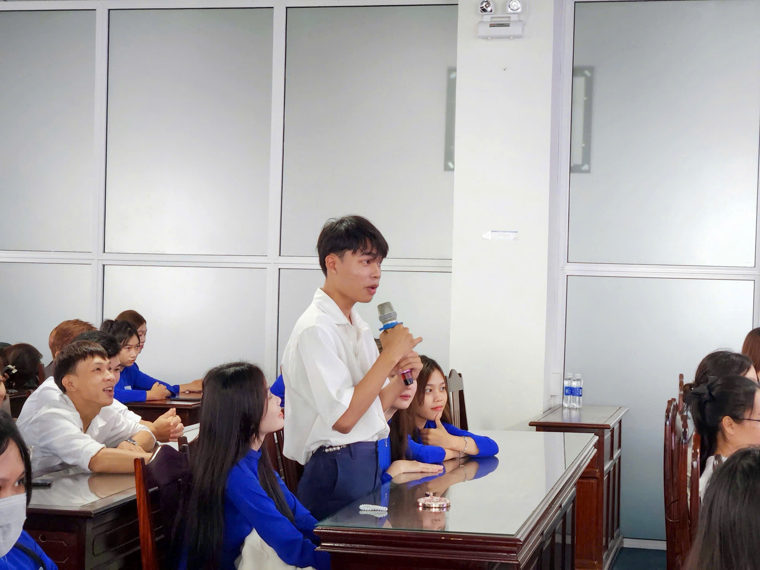 Phần thảo luận được điều hành bởi Chủ tọa đoàn, đã trở thành một nội dung thu hút rất nhiều sự quan tâm của các bạn tân sinh viên, mang đến không khí cởi mở và sôi nổi. Nhiều câu hỏi về chương trình học, phương pháp nghiên cứu khoa học, các hoạt động phong trào cho đến những khó khăn, lo lắng của các bạn trước chương trình học mới, môi trường mới đã được giảng viên lắng nghe và giải đáp chi tiết, tạo sự gắn kết chặt chẽ giữa thầy và trò ngay từ những ngày đầu.