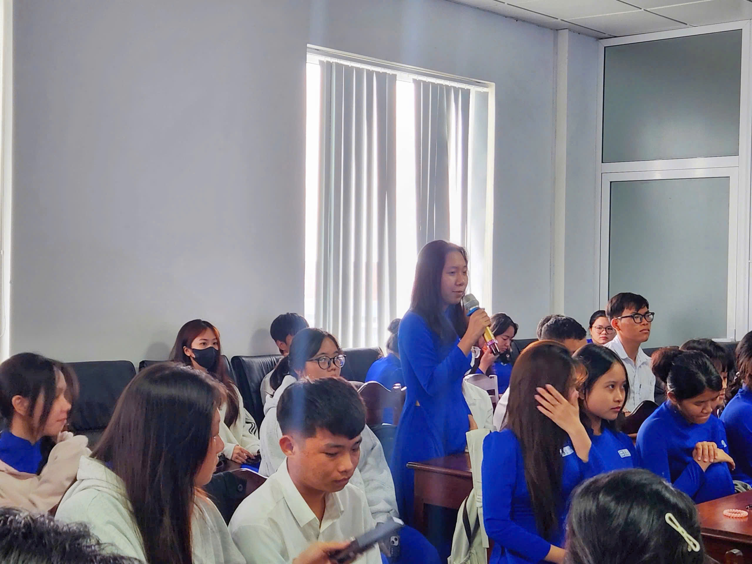 4. Chia sẻ thực tế: Buổi tọa đàm còn mang tính thực tiễn cao thông qua phần chia sẻ kinh nghiệm từ sinh viên khóa trước, bạn Nguyễn Thị Vân Thư (lớp 16DNV) đã góp phần kết nối, truyền cảm hứng và động lực cho các bạn tân sinh viên.
