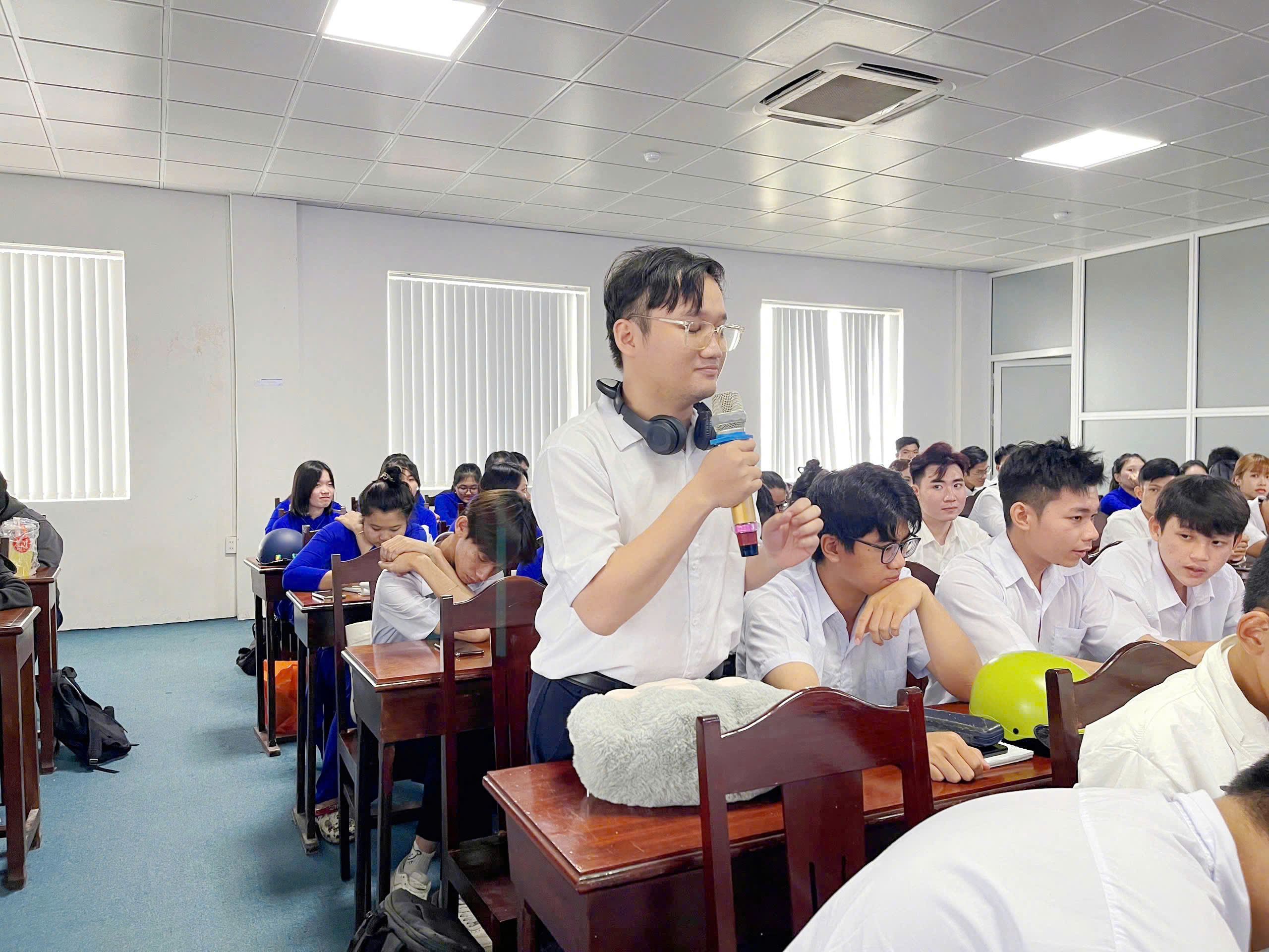 Trong nội dung thảo luận, Đoàn Chủ tọa đã nhận được nhiều câu hỏi thú vị từ các tân sinh viên xoay quanh việc học nhóm, cải thiện kỹ năng ngôn ngữ, mở rộng vốn từ vựng, cũng như bày tỏ lo lắng về cơ hội nghề nghiệp trong thời đại trí tuệ nhân tạo (AI). Tất cả đều được các giảng viên giải đáp tận tình, cụ thể, tạo không khí giao lưu sôi nổi, cởi mở và gần gũi.