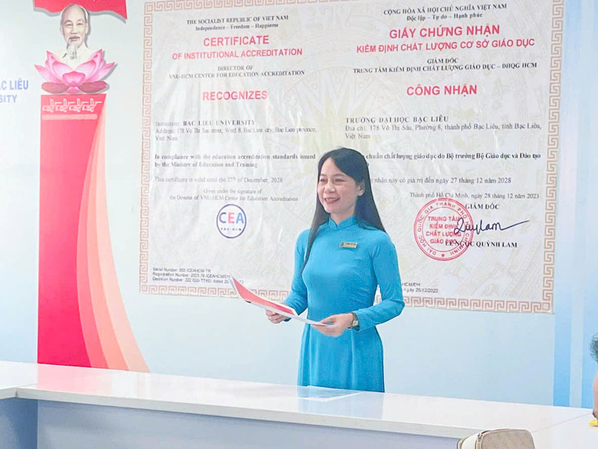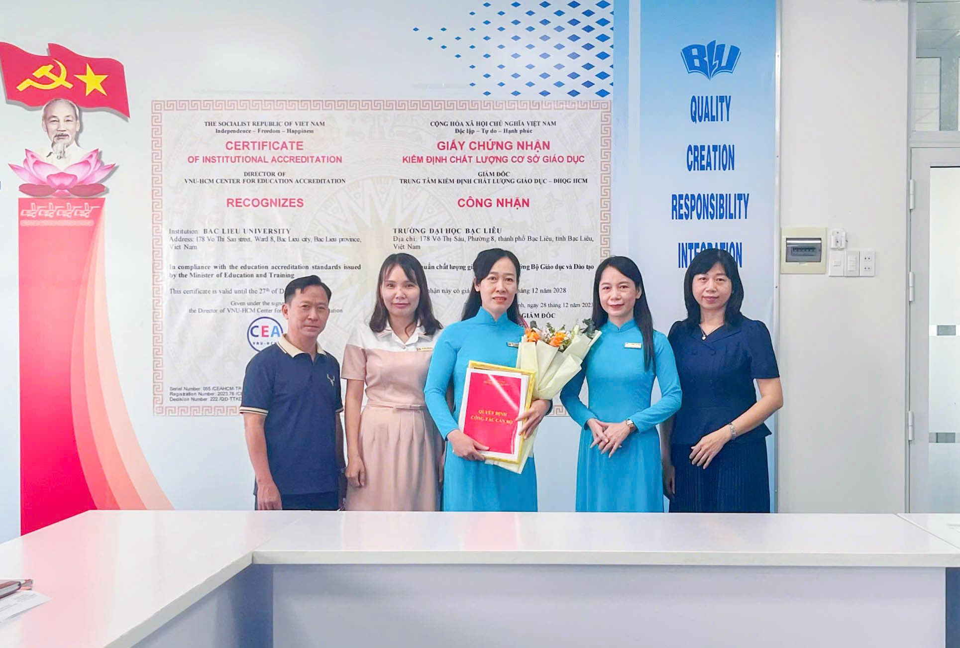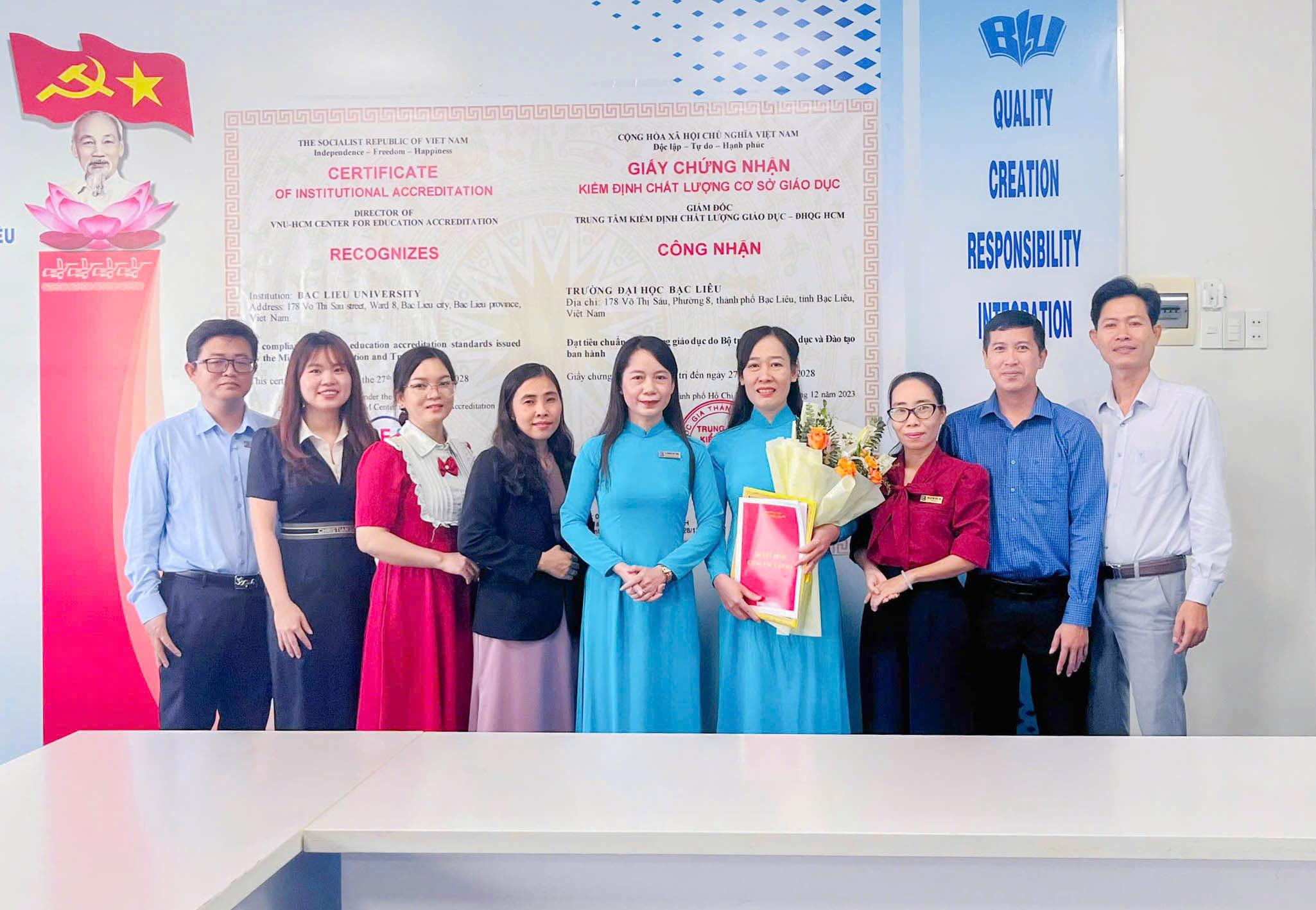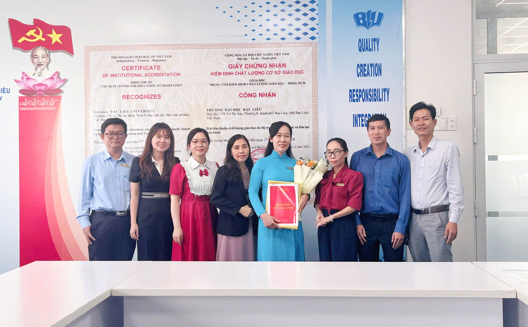 Tại buổi lễ, TS. Trương Thu Trang đã công bố và trao Quyết định Số 707/QĐ-ĐHBL ngày 24/9/2025 của Hiệu trưởng Trường Đại học Bạc Liêu, về việc bổ nhiệm viên chức lãnh đạo quản lý: ThS. Lê Kiều Nương – Phó Trưởng Bộ môn Việt Nam học, được bổ nhiệm giữ chức vụ Trưởng Bộ môn Việt Nam học.